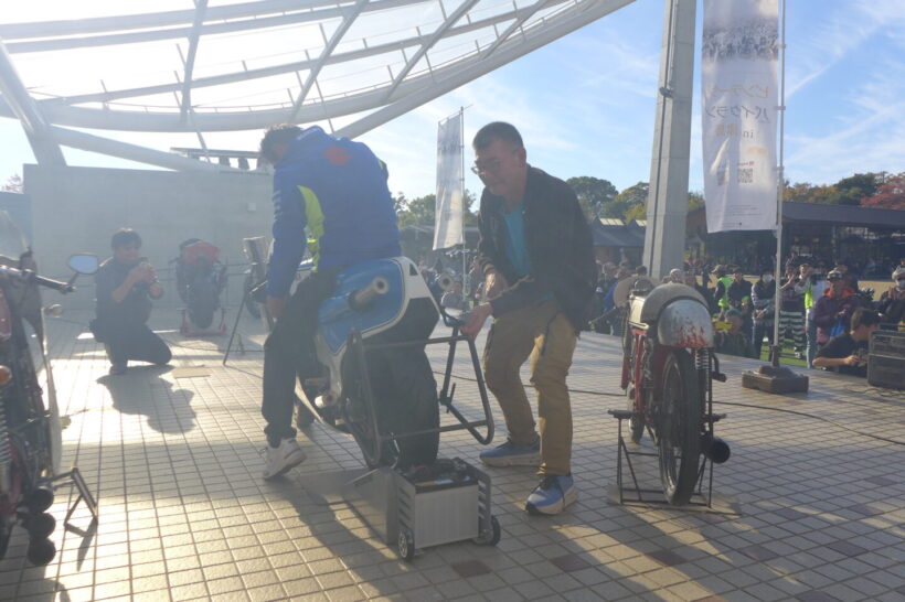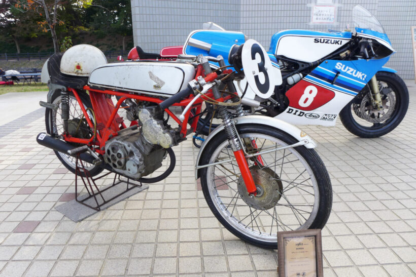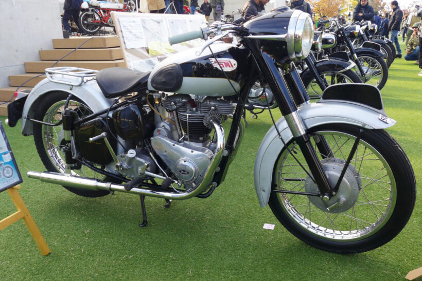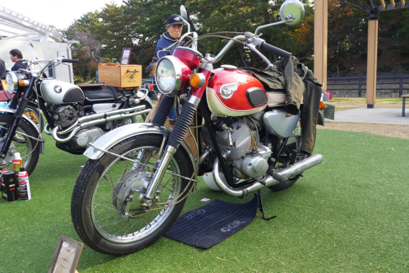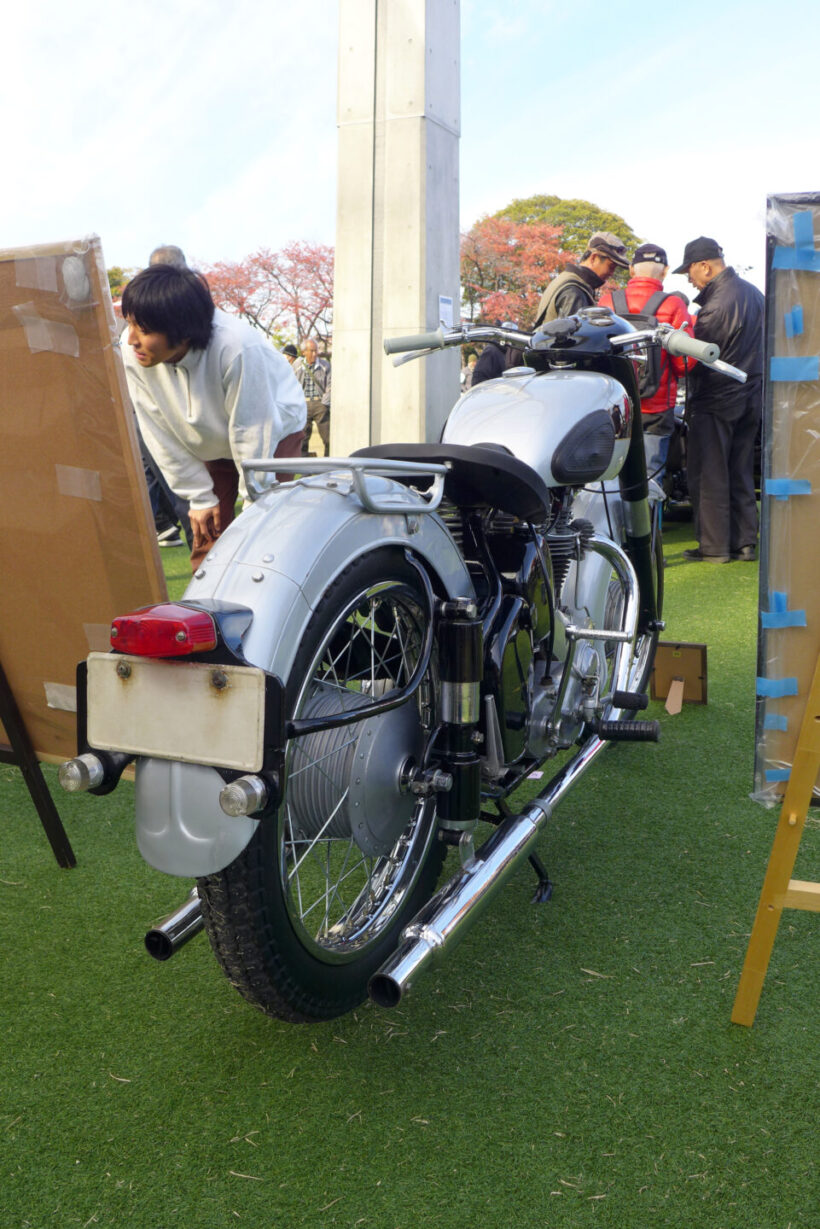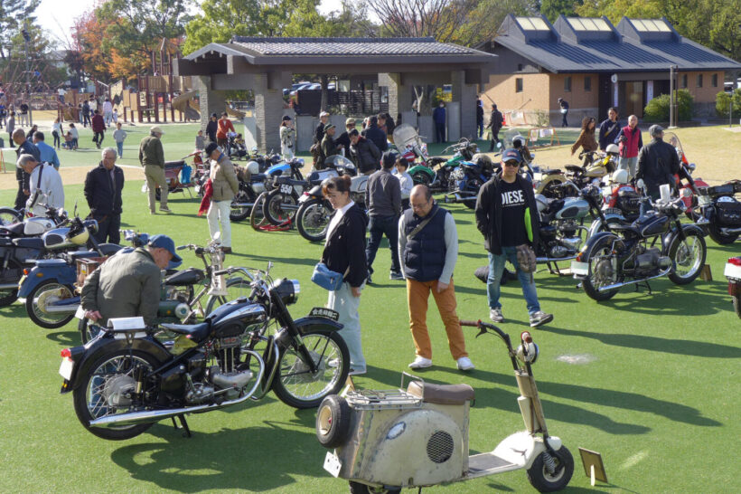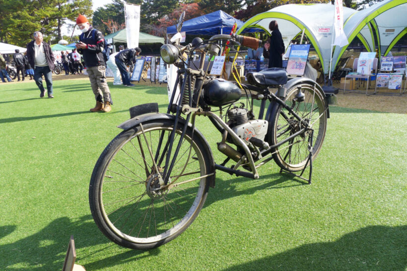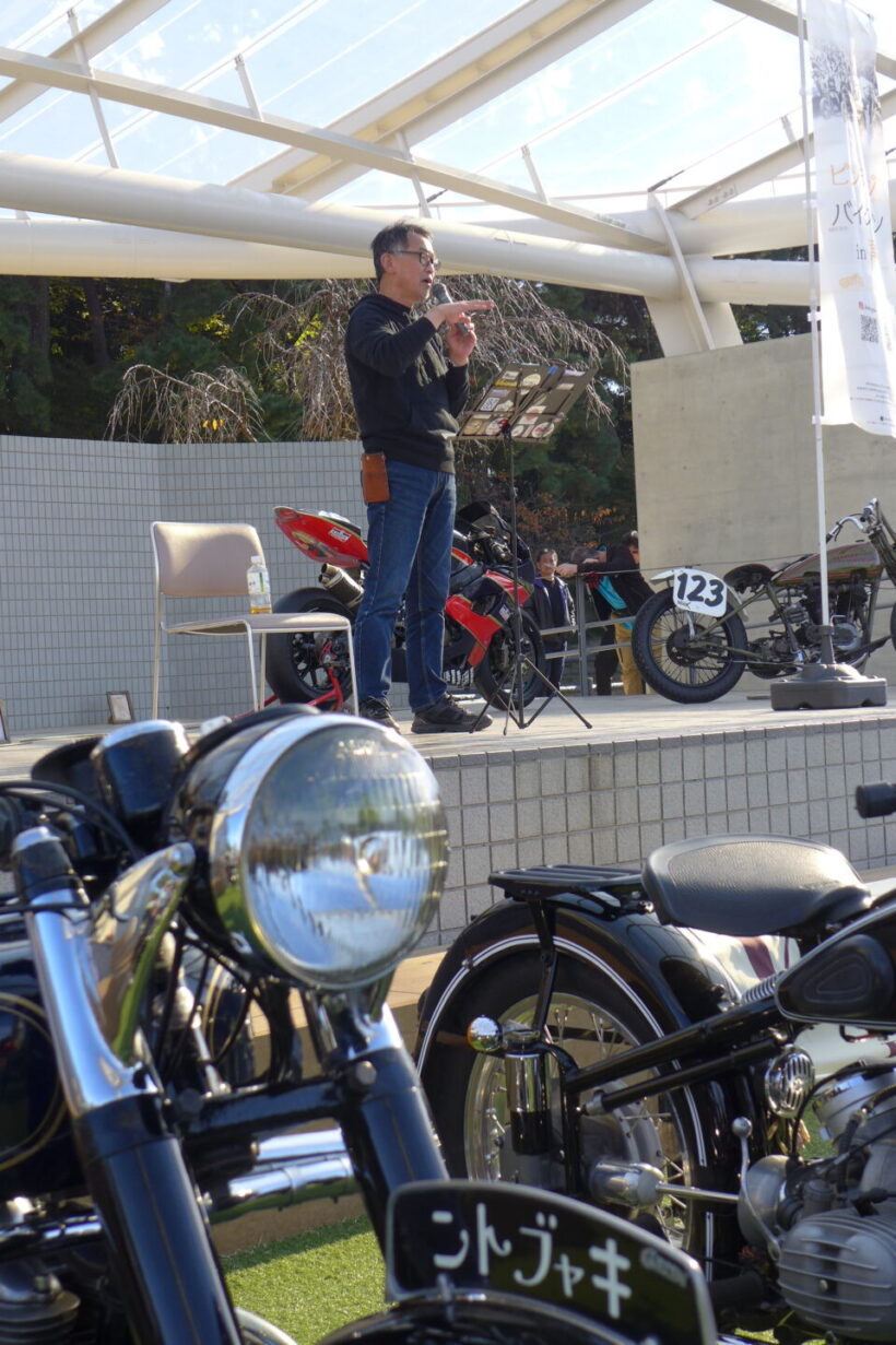 イベント ホンダCB750FOURやカワサキZ1はまだまだ新しい?真の国産クラシックバイクを『ビンテージランin津島』で見た!【写真・7枚目】 エントリー車のIMC K型。 天王川公園の丸池を周回する外周路に並べられたクラシックバイク。この場所は1926~1967年までオートレース場で使用された。マシンが並ぶのは旧スタート位置。 1955年に天王川グランドで開催されたバイクレースを映した一枚。今回の『ビンテージランin津島』に展示された写真パネルより。 かつて二輪や三輪、四輪競技が行われていた800mのオーバルコースは、天王川公園の丸池を周回する遊歩道となっている。 『ビンテージランin津島』が開催される天王川公園の全景。 イベントは朝9時の開会式からスタートした。 地元・津島市出身の水谷勝選手が今回のスペシャルゲストとして招かれた。1982年の全日本ロードレース選手権・500ccクラスのチャンピオンであり、鈴鹿8耐をはじめとした数多くのレースで活躍した水谷選手のキャリアは、少年期にここ天王川から始まった。 ステージ上では水谷選手がレースで使用したスズキRG500ガンマとGSX-R1000のエンジンスタートデモを開催。RG500ガンマは白煙とともにレーシーな2ストサウンドを会場に響かせた。 『二輪文化を伝える会』理事長の松島裕さんによる講演も開催された。レース場跡地が往時のまま残る天王川公園の歴史的重要性や、我が国のオートバイの歴史についてわかりやすく語っていた。 懐かしのチンドン屋の実演ステージ。オートバイファンだけでなく一緒に来た家族連れが楽しめるようなプログラムも充実していた。 昭和の風物詩であった紙芝居の実演も行われ、子供たちを中心に人気を集めていた。 8回目を数える今回の『ビンテージランin津島』には、1969年までに生産された国産車、欧州車、アメリカ車が約80台集まった。 展示エリアは車両の間隔が広く取られ、貴重な車両をじっくりと見学することができた。現代のバイクとは異なる構造のマシンも多く、オーナーに直接車両について質問ができる。 ダイハツの子会社だったツバサ工業が1954年に発表したT80をレーサーに改造したマシン。実際に天王川グランドで行われたレースを戦った車両だ。 1954年型のダートレーサー。フレームは手作りされたようで、エンジンは1954年型ツバサ製、ミッションはBSA製、車種不明のガーターフォークとさまざまなバイクのパーツが流用されている。 水谷勝選手が2005年鈴鹿8耐に参戦時に使用したウォルターウルフカラーのGSX-R1000。水谷選手がスペシャルゲストとして招かれたことから、ステージ上に特別展示された。 同じく水谷勝選手が1982年全日本500チャンピオンとなった際に使用したスズキRG500ガンマ。 今回の『ビンテージランin津島』にエントリーしたオーナーとスタッフ全員による記念撮影。 極東製のオートレース競争車。オーバルコースを周回することで戦われるオートレース車両の中でも、比較的に早い時期に製作されたマシンのようだ。一般的なレーサーとは構造が異なることがわかる。 スポーツカブC110をベースに、ホンダが世界GPを戦うために1962年に49.9ccDOHC4バルブエンジンを持つワークスマシンとして誕生させたのがRC110である。そして、同車をベースにレース初心者にも扱いやすい市販レーサーとして販売したのが写真のCR110カブレーシングだ。天王川のレースでも大いに活躍した。 1965年型ドリームCB77スーパースポーツの警察仕様であるCP77をオーナーの中川明洋さんがレース仕様にレストア&カスタムした。同じレーサーの部品を使用し、CR110のワークシート、ワンオフマフラーを装着した。 1927年型ハーレー・ダビッドソンJD型。1922年に誕生し、VLにその座を譲る1929年まで生産された同社のフラッグシップモデル。心臓部は1200ccのOHV/排気サイドバルブのオホッツバルブエンジンを採用する。 1952年7月の道路交通法改正を受けて36ccだった自転車用補助エンジンのスズキ・パワーフリーの排気量を60ccまで拡大した改良型のダイヤモンドフリーDF60。 スズキ・ダイヤモンドフリーDF60のリヤビュー。同車は第1回富士山登山レースを自転車用補助エンジンとしては最速の58分59秒で部門優勝したほか、札幌~鹿児島間の日本横断テストを成功させるなど、スズキは後発ながら高い性能を発揮した。 スズキ・ダイヤモンドフリーDF60の空冷2ストローク単気筒エンジン。最高出力は2psを発揮する。その高性能ぶりから月産6000台を販売する振りの人気を博した。 1954年型IMC K型。美しいこのオートバイは名古屋の伊藤機関工業がトライアンフ・サンダーバードを参考に製造した。当時のユーザーからは「もっとも美しい国産バイク」と評価され、『モーターサイクリスト』誌の人気投票で1位に輝く。 1954年型IMC K型のリヤビュー。しかし、伊藤機関工業はキャブトン・ブランドで知られる名古屋市内のみずほ自動車製作所にエンジン供給を頼っていたため、競合を恐れた同社に取引を停止されてしまい、わずか1年で生産中止