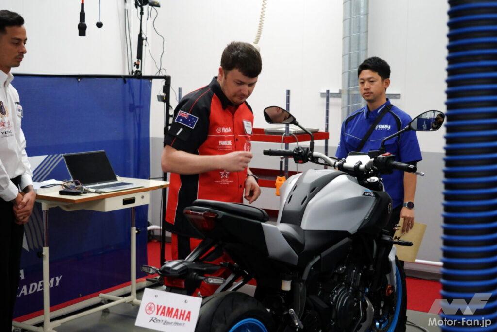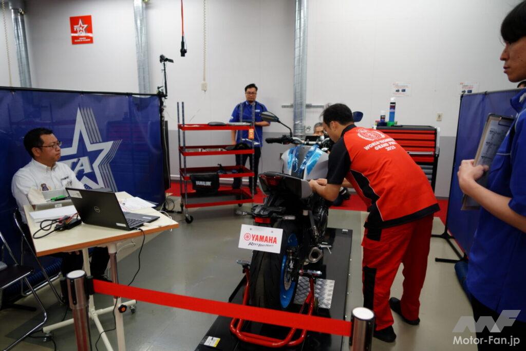 具体的な競技内容を見てみましょう。題材となる故障を想定したバイクは、スポーツモデルクラスとコミューター(スクーター)クラスの2種類に分けられています。例えば、優雅にロングツーリングを楽しむ人が多いヨーロッパと、バイクが生活の大事な相棒となるアジア圏など、実際のマーケットの実態に即したものとするためのもの。違った見方をすれば、それだけ世界の幅広い地域で、様々にヤマハのモーターサイクルは行き渡っている証拠とも言えます。