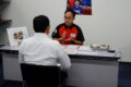 競技は、バイクのメンテナンスを依頼したお客様を店内で納得行くように接客することを想定して行われます。お客様役を務めるのは、そのメカニックの所属する販売店と関係のある地域のヤマハインポーターの担当者などが多いとのこと。言葉がちゃんと通じて、顔見知りのため、要らぬ緊張をすることもないというわけです。