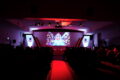 さて、ほぼ丸一日を費やし、故障診断と接客対応競技を終えた選手たちは、コンテストの表彰が行われる社内のステージもある講堂へと移動します。薄暗い会場内は、金色のトロフィー、ゴールドを基調とした背景や看板でゴージャスに彩られています。ここもすごく本気で気合が入っています。