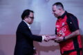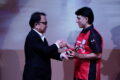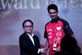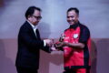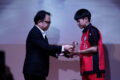 22名の参加者がステージに並び、ひとりひとりに対し設楽元文社長自らトロフィーを授与します。