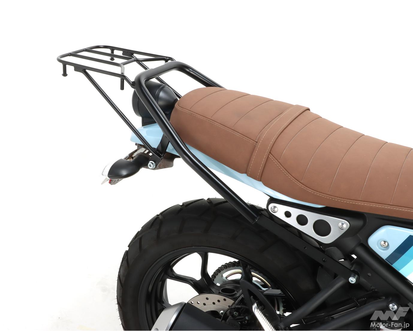 実用性を重視したリヤキャリアー。最大積載量は約9.0kg。荷物の搭載はもちろん、トップケースの取り付けにも便利。信頼のメイド・イン・ジャパン。