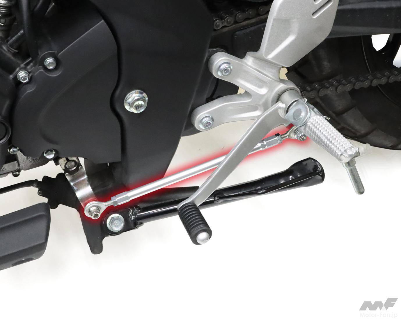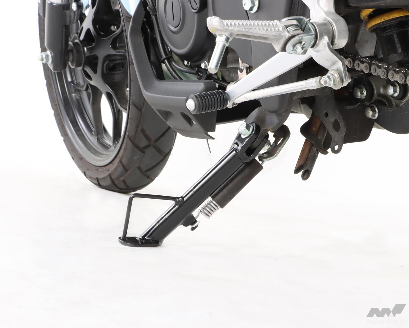 小柄な体形のライダーに最適な、ローダウンリンクとローダウン化に対応するショートサイドスタンドが1セットになったキット。シート高を低くして足着き性を改善。ショート型サイドスタンドの採用で、駐車時の車体の傾きも最適化。
