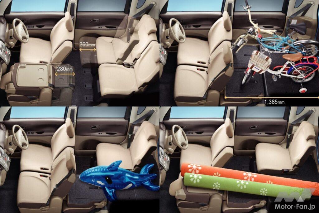 初代よりもホイールベースを2440mm→2490mmに拡大し、初代はヒンジドアだったものを助手席側後席はスライドドアに変更し、さらにセンターピラーをなくした。これにより、フロントドアとリアスライドドアを全開すると、幅1480mm×高さ1355mmの圧倒的な広さの開口部を実現。このミラクルドアによって、初代にも増して広い室内スペースと楽々の乗降性ができるようになったのだ。