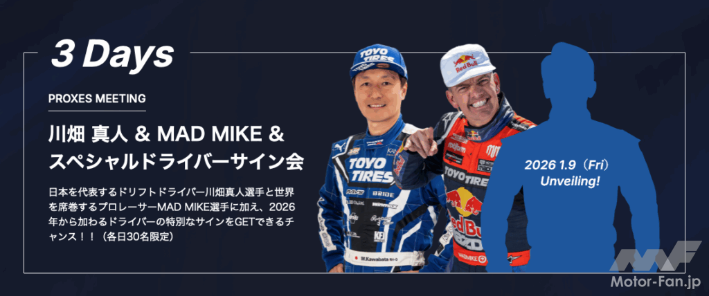 またステージプログラムでは、「PROXES」シリーズ誕生35周年を記念し、TOYO TIRESのブランドアンバサダーをはじめとするゲストが登壇するスペシャルイベントが開催される。加えて、国内外のオフロードレースで活躍する同社サポート選手によるトークショーや人気ゲーム「グランツーリスモ7」で世界チャンピオンになった経験を持つ同社社員との対戦ステージなど、独自の特別企画が用意される。