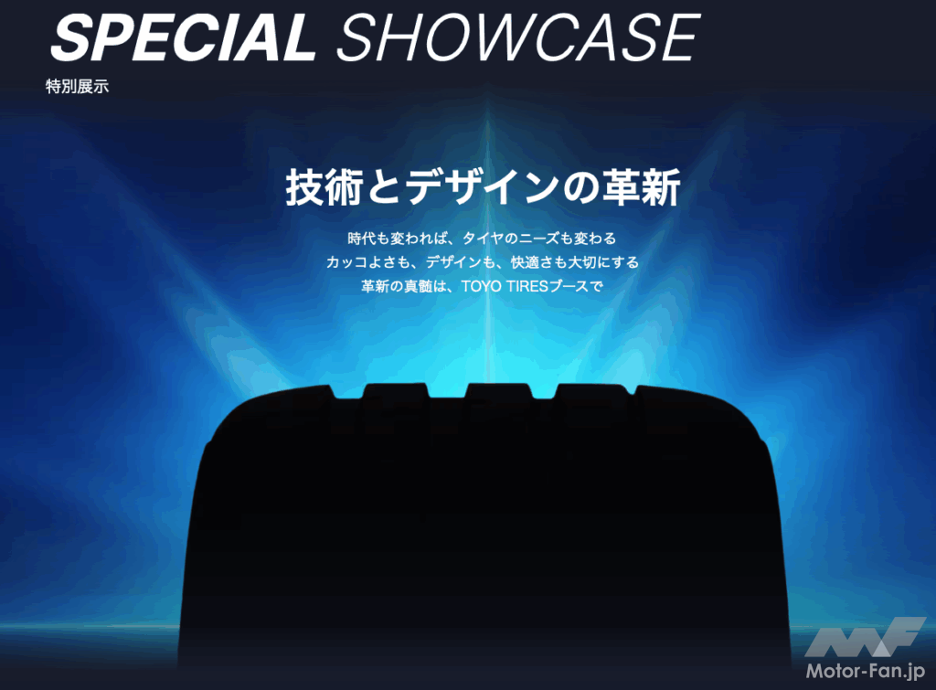 また、顧客ニーズの多様化を見据えたデザインコンセプトタイヤが参考出品される。これらの展示を通じて、両ブランドの魅力とさらなる飛躍に向けて挑戦を続けるTOYO TIRESの取り組みが幅広く紹介される。