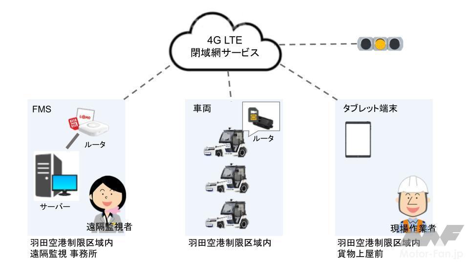 運用面では、複数台車両を用いた効率的なオペレーションの実現を図るため、豊田自動織機がANAの協力のもと開発した「Fleet Management System(以下、FMS)」が導入されている。FMSは車両への搬送指示・車両の運行管理に加え、限られたスペースを効率的に使用するための出発・到着レーンの自動割り当て、信号機制御との自動連動を行い、最新情報をタイムリーに一元化することができる。