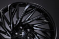 まずはテンペストタービンVXのブラックエディション。採用されるのはグロスブラック色で、上質なツヤ感を楽しめるのが特徴。このツヤ感がテンペストタービンVXに絶好で。台風のように渦を巻く疾走感満点なスポークは、多面的だからさまざまな方向からの光を拾って輝きを放つ。黒でありながらもギラギラだから、その立体的で独創的なスクリュー造形をより強く際立たせることができるのだ。
