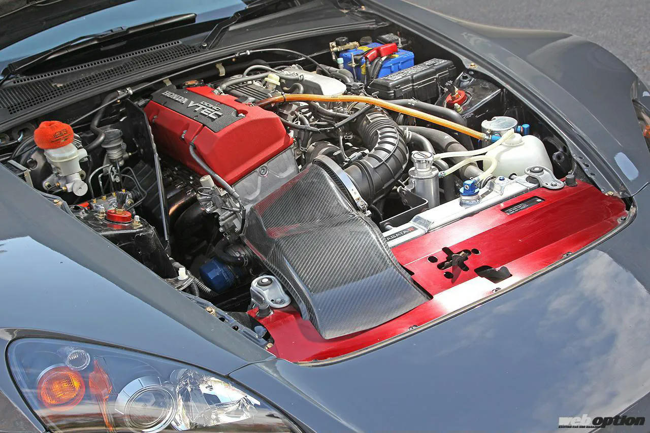 心臓部は、F20Cの素性を活かすべく吸排気+ECUチューンという必要最小限のメニューに留めている。特にアミューズのハイテックROMはアクセルレスポンスが大幅に向上したそうだ。