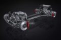 また、エンジン高を低く抑えるため、ドライサンプ潤滑方式、通常より薄いオイルパン、そしてわずか83.1mmのストローク(ピストンがシリンダー内で移動する距離)を採用している。