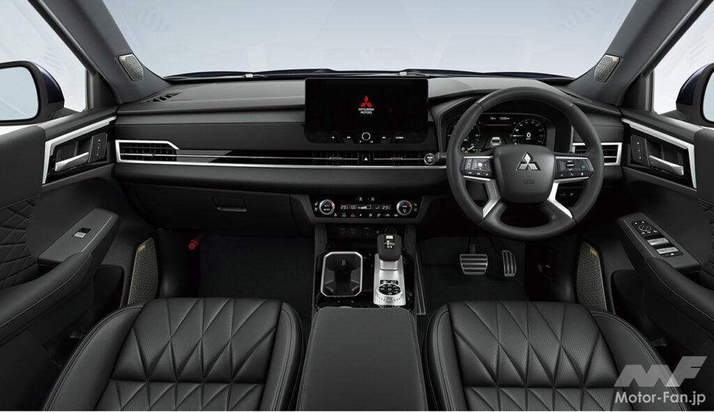 インテリアでは、ブラック色仕様をベースに、最上級グレード「P エグゼクティブパッケージ」専用となるセミアニリンレザーシートにブラックのセミアニリンレザーを新たに採用。シートステッチをシルバー色としたほか、インストルメントパネル上部やドアトリム部にもシルバーステッチで統一することで、より洗練された上質なキャビンを創出している。