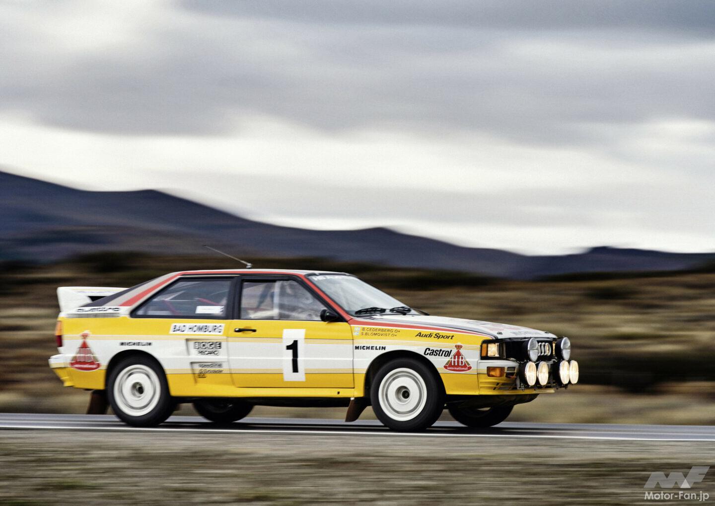 1980年、オリジナルAudi quattroの5気筒ガソリンエンジンは、ターボチャージャー、インタークーラー、そしてフルタイム4輪駆動を備え、強力なパッケージングに仕上げられた。販売開始時、その出力は147kW(200 PS)。アウディがこのモデルで1982年世界ラリー選手権のマニュファクチャラーズタイトルを獲得し、翌年には新たに開発された4バルブの225 kW(306 PS)を発揮する5気筒の軽合金エンジンにより、当時公道走行用にドイツ企業が提供した中で最もパワフルなモデルとなった。このモデルは、新しいグループBラリーカーのベースとなり、この4バルブエンジンは、初期段階から331kW(450 PS)を発揮した。