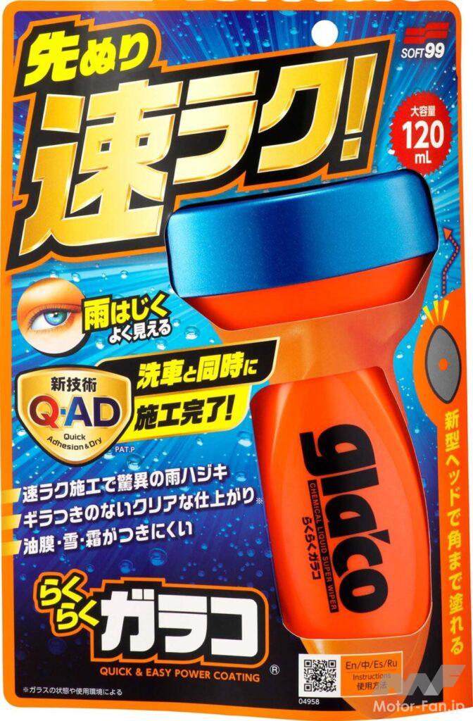 その名は『らくらくガラコ』。洗車の前に塗るという発想は、従来の概念を根底から覆すものだ。もともとタブーとされる行為をむしろ推奨するその背景には、「Q-AD」と称される高速密着&速乾性を実現する新技術の存在がある。短時間で強固に定着するために、洗車前に塗布すれば洗車中に定着することで待ちの時間も不要となり、被膜を均一に保つレベリング性が高いために被膜のムラも抑えられ、余剰成分がシャンプー洗車で一掃されることで、ギラつきも抑えられる。