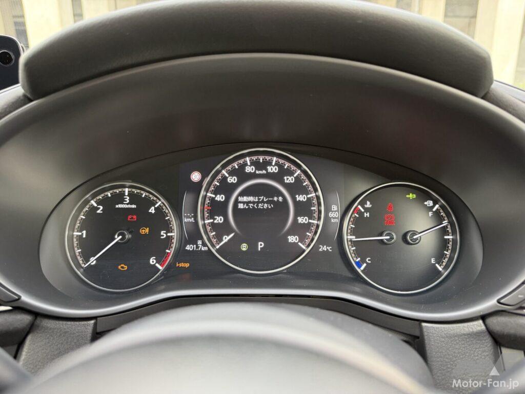 で、街中での取り回しも優れている。やはりこのくらいのサイズがちょうどいい。1週間お借りして通勤、往復100km超の郊外ドライブなど400kmほど走ってみた。今回のテーマは、CX-30、どのくらい熟成しているか? ディーゼルエンジンは未だ魅力的か?の二点である。