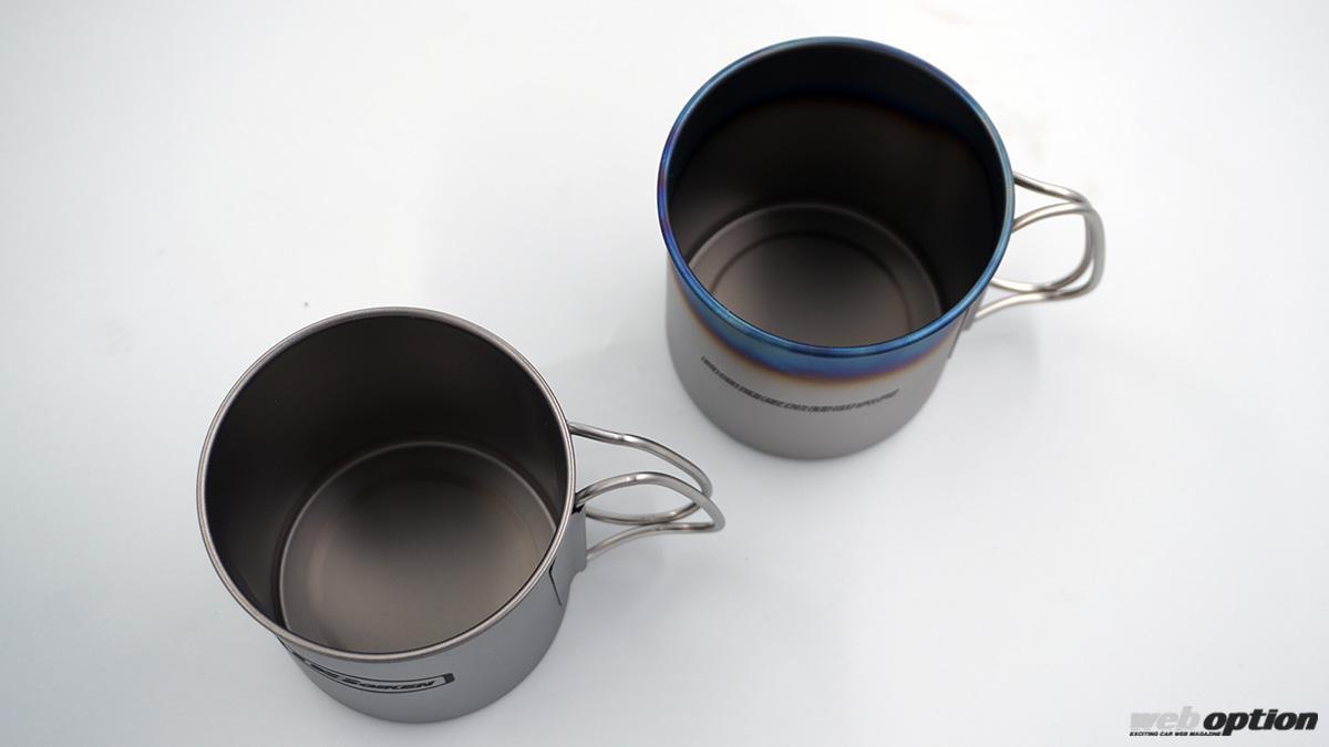 このチタンマグカップは「OS技研」と「岡﨑速度技術研究所」のロゴが刻印されたスペシャル仕様で、素材から拘り抜いた純日本製。焼き入れは職人の手作業で行われており、一つとして同じものは存在しない。