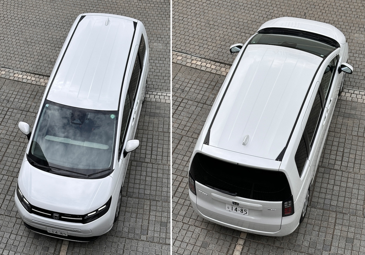 タイヤとボディのバランスも良く、足元がプアに感じることもない。内部のスペース最重視とはいえ、その外観が商用バンのような平坦な板に見えることもなく適切なプランカーブを用いている。フロントのコーナー、角度をつけたバンパーにも造形の工夫があり、それとフロントのモチーフを上手くあしらっている。