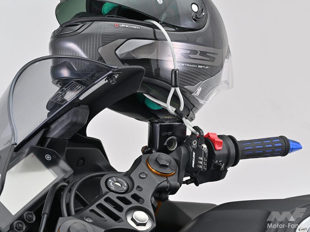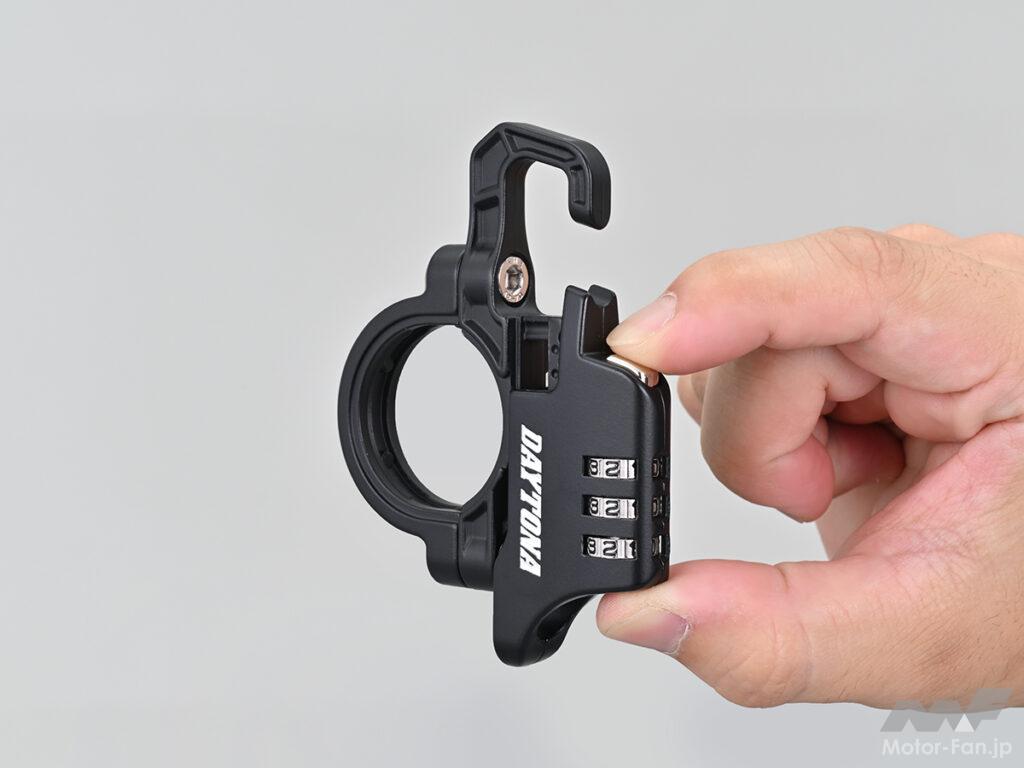 狭いスキマに取り付けできるヘルメットロック! カギ不要のダイヤル式を採用