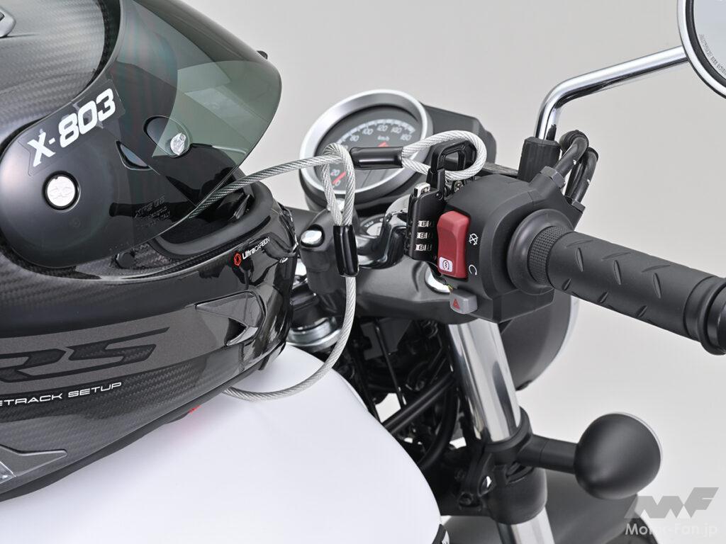ヘルメットを盗難から守るワイヤーロック。ハンドル周りに常設できるのが便利!【タナックス】