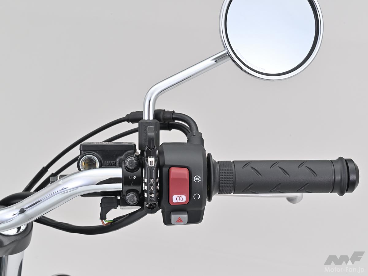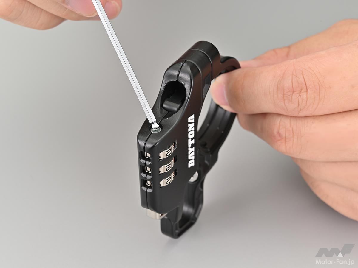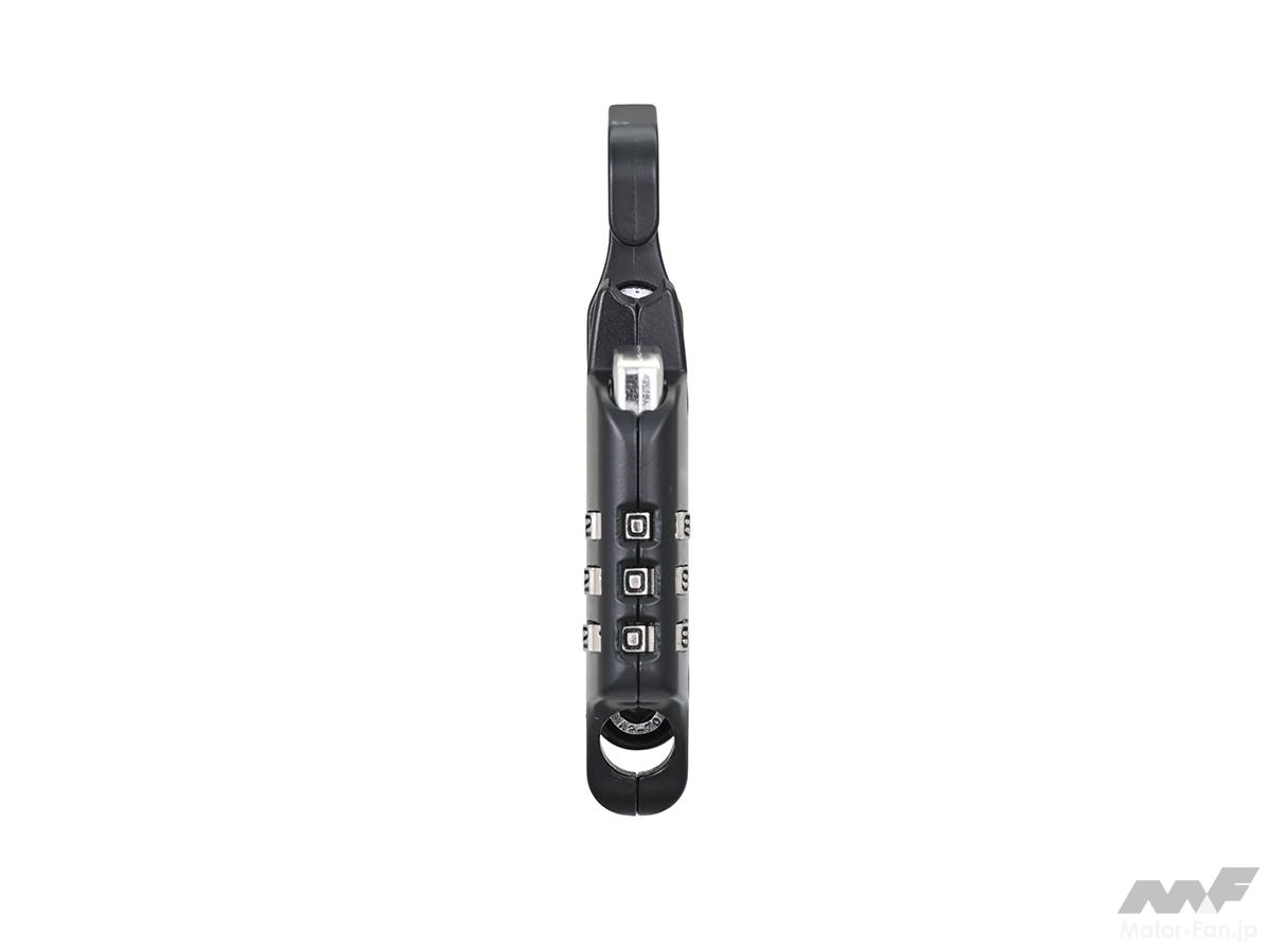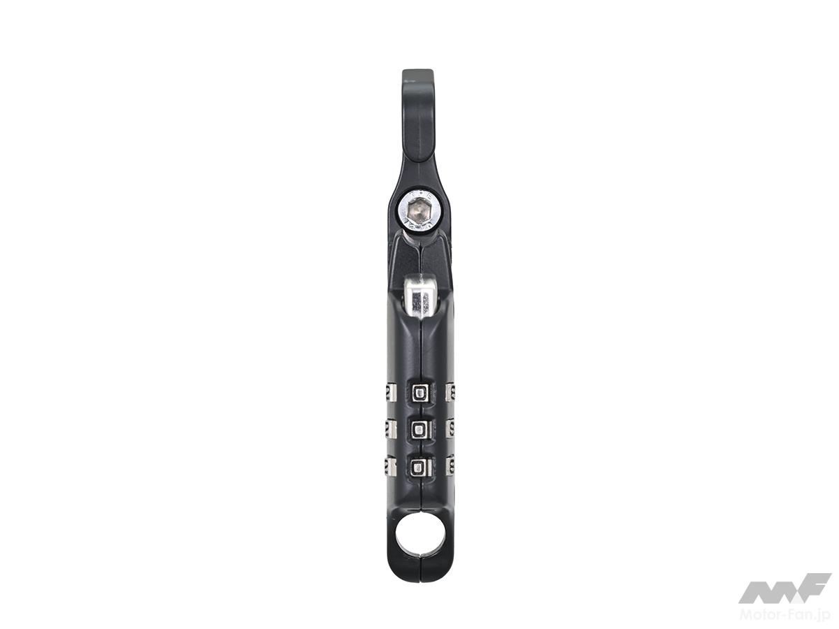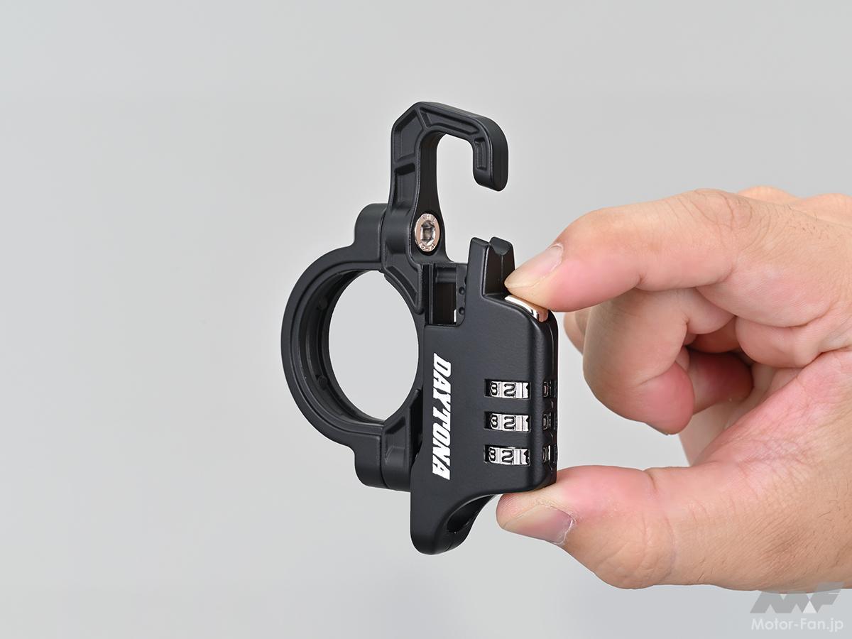 狭いスキマに取り付けできるヘルメットロック! カギ不要のダイヤル式を採用