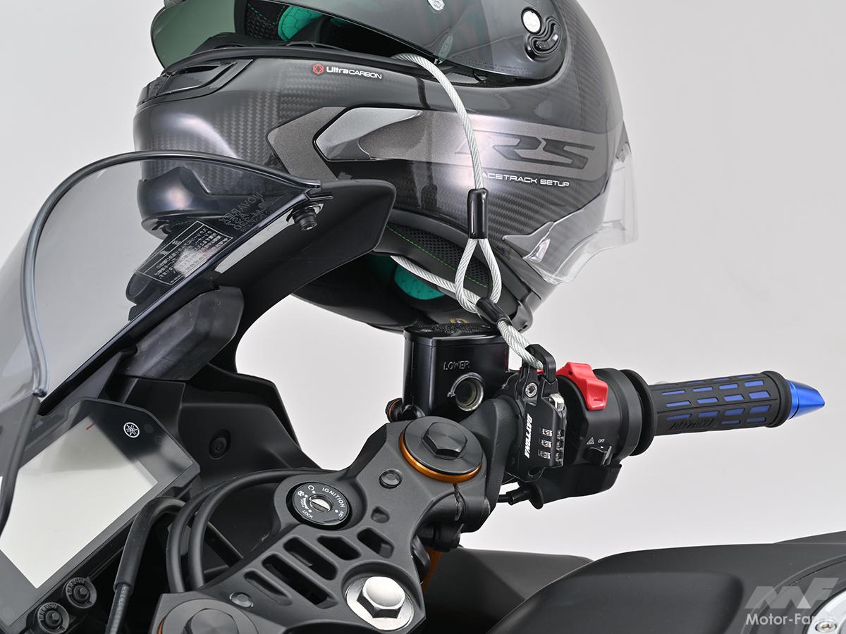 ヘルメットを盗難から守るワイヤーロック。ハンドル周りに常設できるのが便利!【タナックス】
