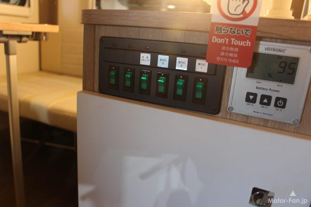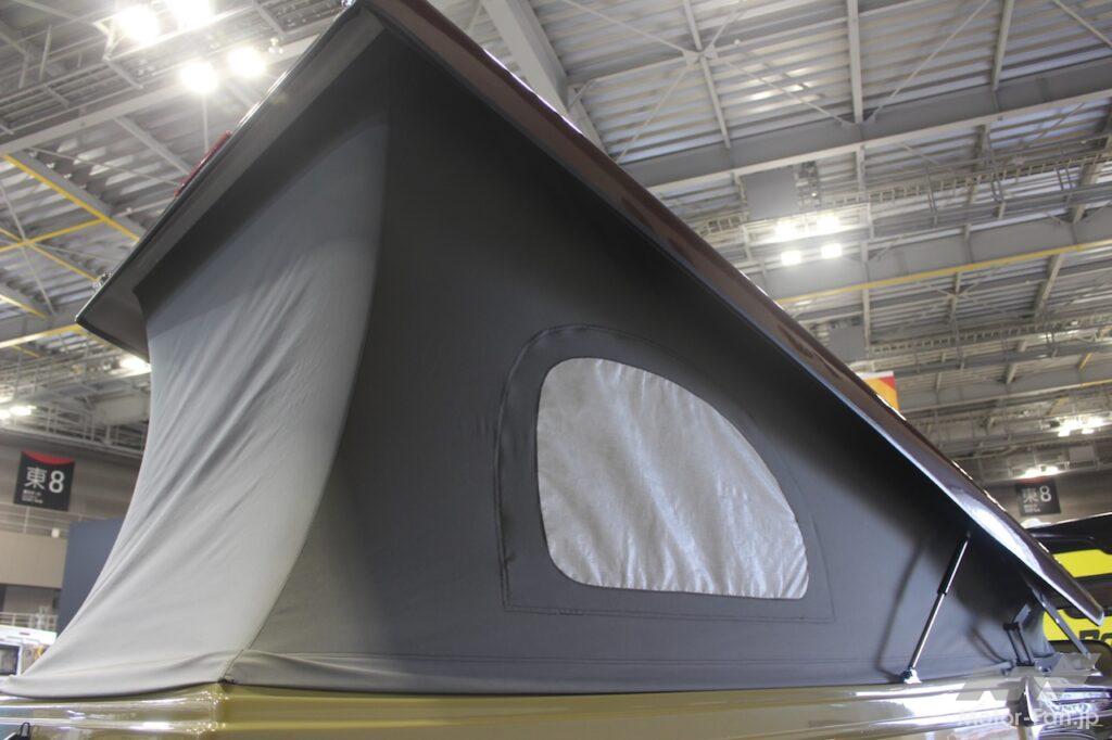 展示車両は、ポップアップテント、同社が特許を取得している超急速充電EVOシステムとリチウム300Ah、DCクーラーなどを備え、価格は522万5000円。