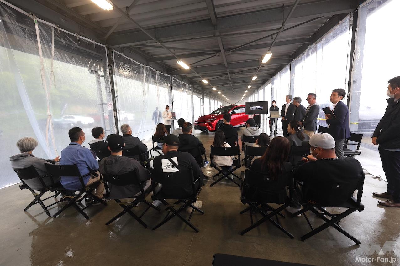「この試乗会、新型クラウンクロスオーバーのオーナー限定のご案内。開発中に乗っていただくのはトヨタとして初めての試み。いろんな意味のチャレンジです。オーナーの皆さんに、いまのおクルマのお話しを聞いたり、次のテストモデルに乗っていただいてお声をいただける場を、クルマ作りに反映していきたいと思っています」と述べた。