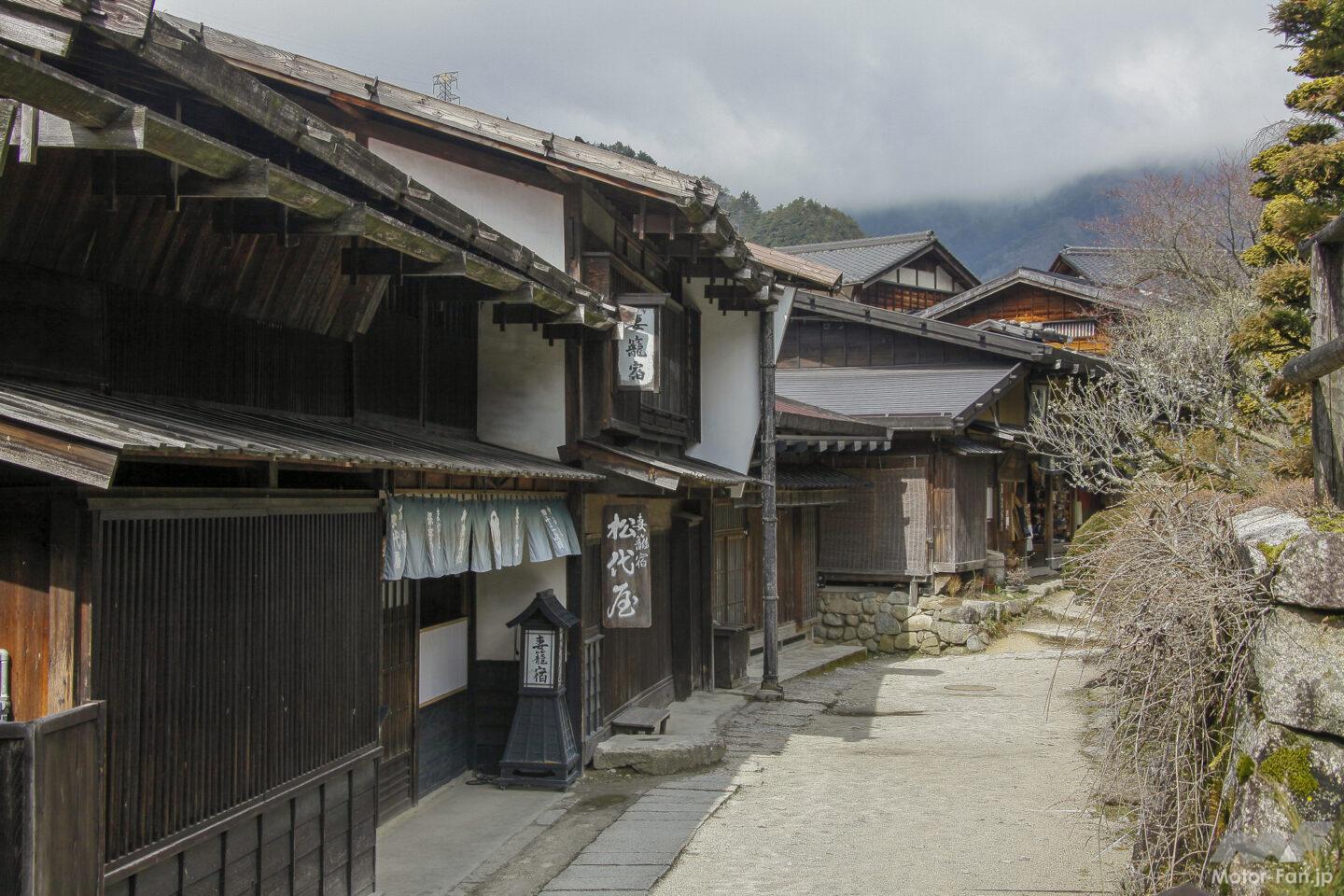 江戸から京へ通じる中山道の69次の内、江戸から42番目の宿場町がこの妻籠宿。中山道と伊那街道が交差する要衝としても賑わったそう。そんな江戸時代の古き光景が楽しめます。のんびりと散策するのも良いし、当時を彷彿とさせる宿泊体験を楽しむのも良いでしょう。ツーリング途中のランチタイムに立ち寄るのもお勧めなのです。