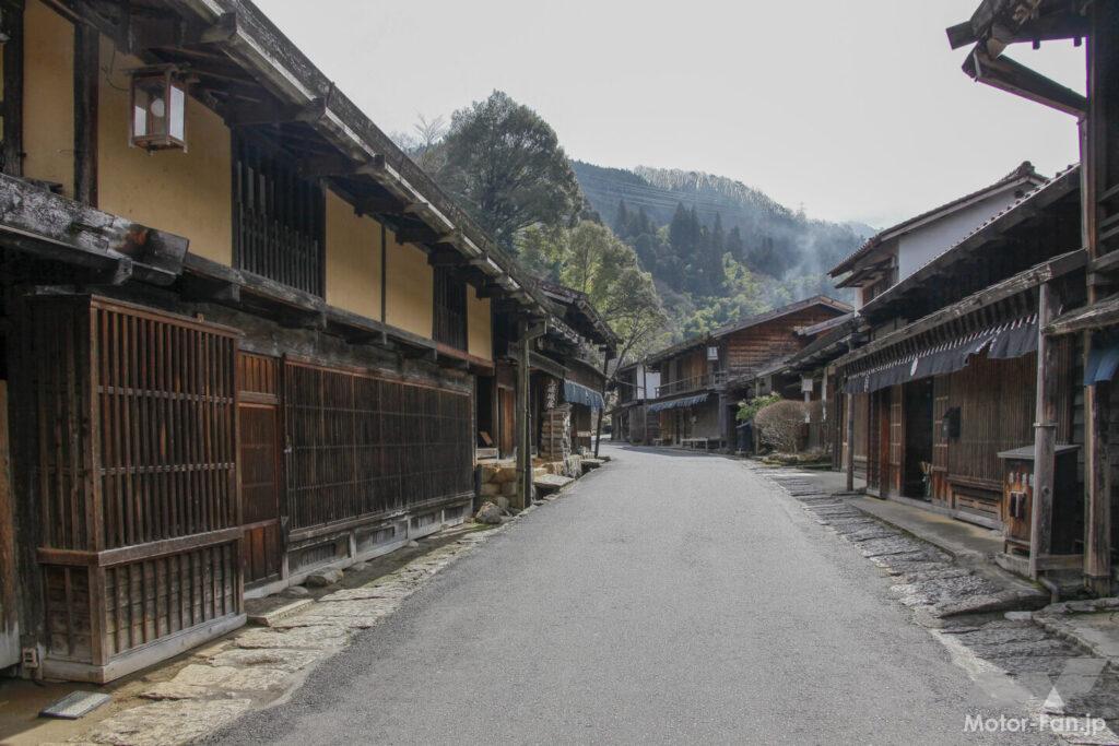 木曽地域は2016年に日本遺産に認定され、妻籠宿寺下区は、“全国町並み保存発祥の地”としても知られています。町全体は、1976年から「重要伝統的建造物群保存地区」に選定され、周辺の自然や街道、そして山深い木曽谷にある集落の宿場景観が保存されています。そのため町中を通る中心路の一部は、10時〜16時迄車両通行規制されているので、徒歩で散策を楽しむことになるのです。