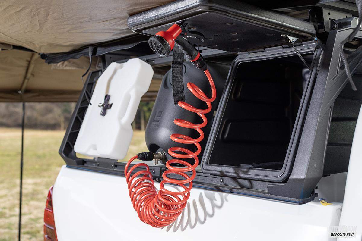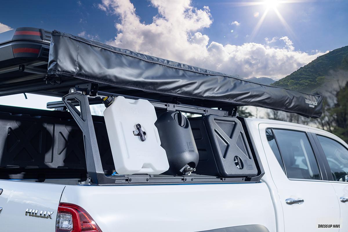 そして、オーバーランドスタイルのキモとなっているのがレイトナーデザイン製アクティブカーゴシステム(ACS)。ハイラックスの荷台にストレージなどを追加できるユーティリティギアで、野営に必須のオーニングやルーフトップテントの導入を可能としている。