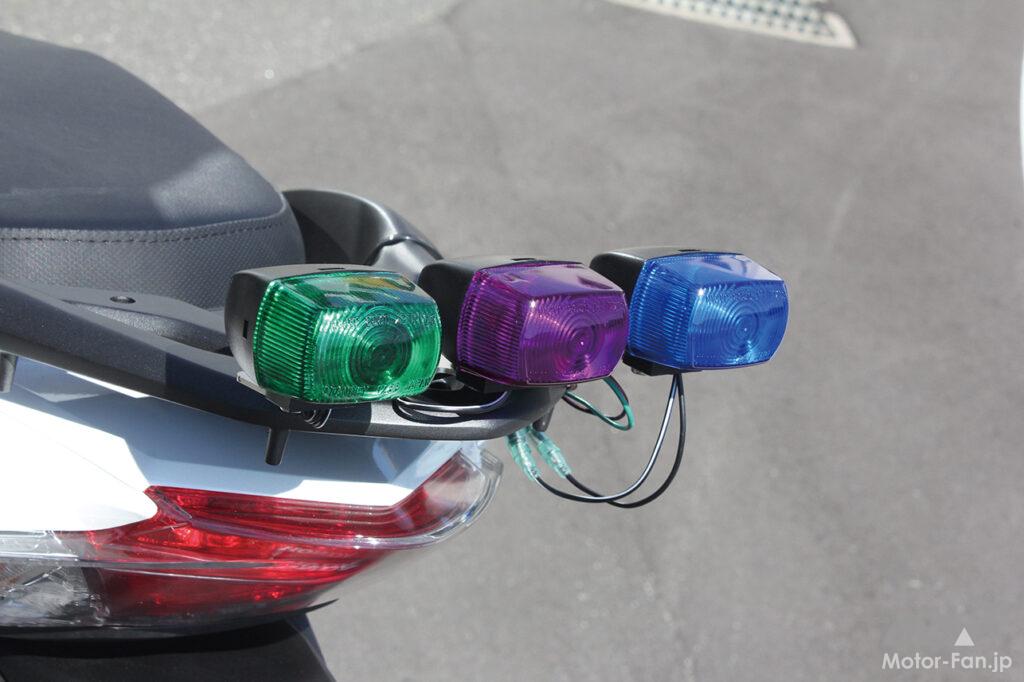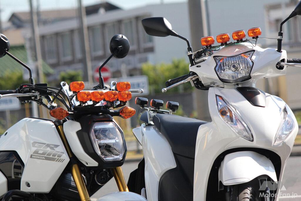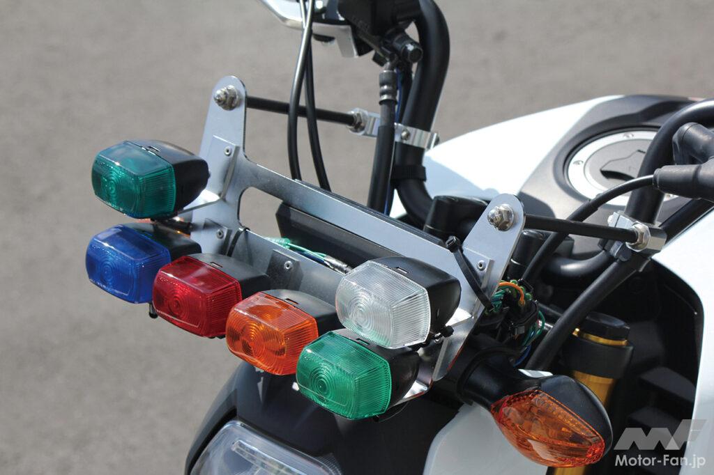 グロム(型式JC92)専用のキットとしてC.F.ポッシュが開発。各色のレンズはホンダ教習車表示ランプと互換性があり、これまでの教習車からも流用できるから経済的なのだ。