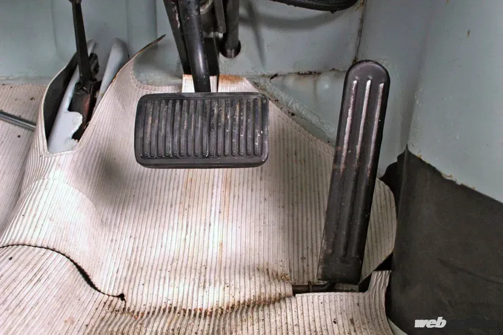 オルガンペダル式のアクセルペダルに、幅広のブレーキペダルという、今と変わらぬオートマ仕様のペダルレイアウト。