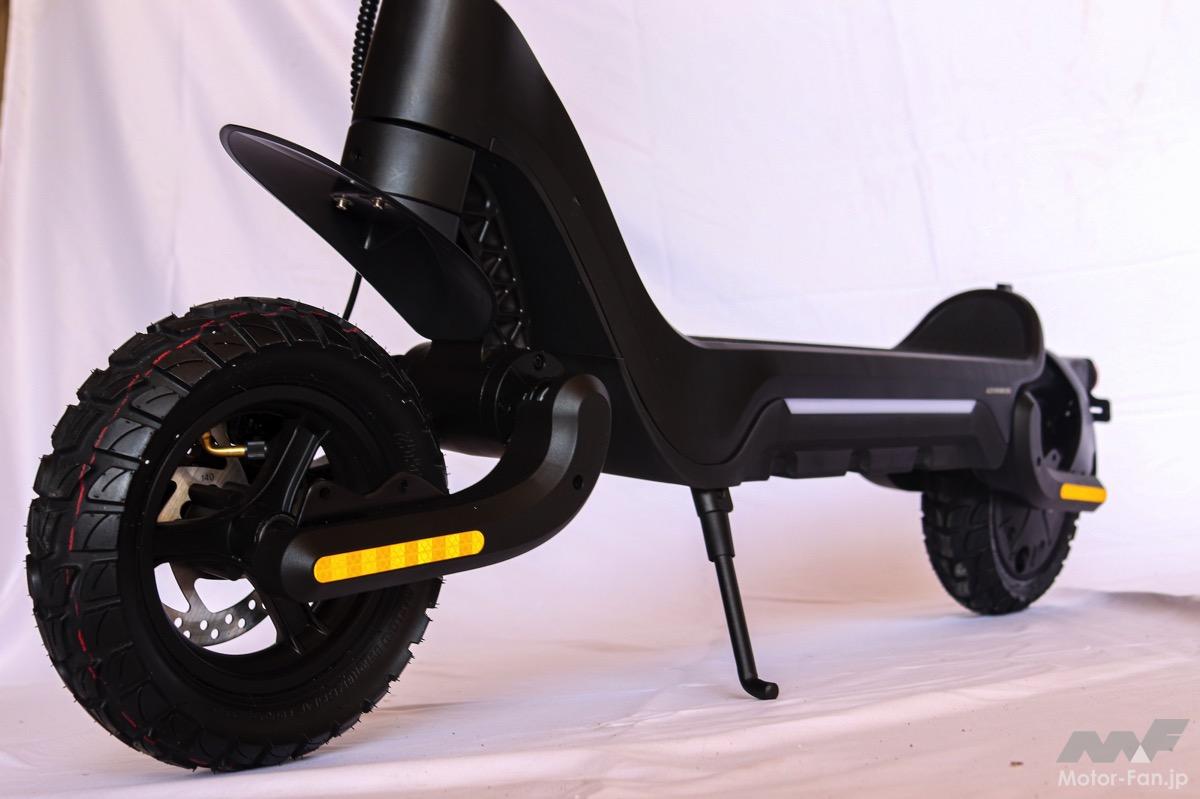 本製品は、2023年7月1日に施行された改正道交法に対応した「特例特定小型原動機付自転車」として設計されている。ナンバー取得と自賠責保険の加入により、16歳以上であれば免許不要で公道や歩道の走行が可能となる。この法改正対応により、ユーザーは手軽に電動キックボードを利用できる環境が整えられている。