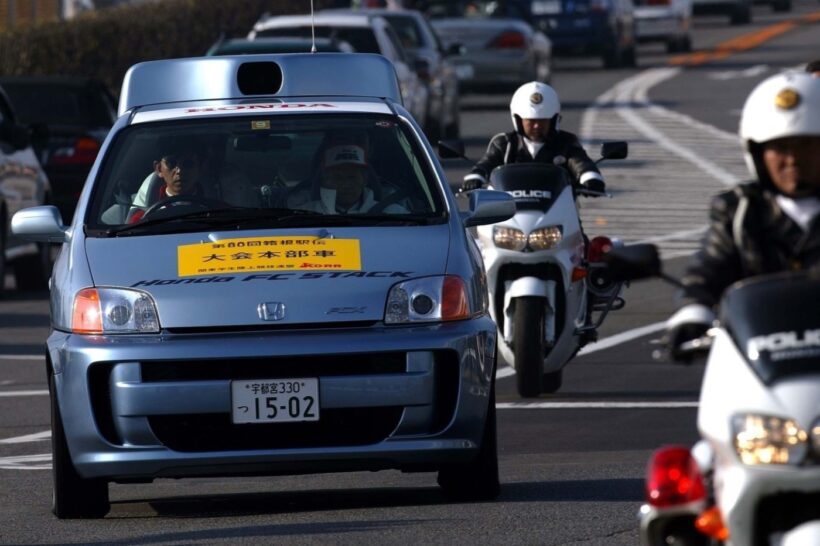 2004(平成16)年1月3日、ホンダの燃料電池車「FCX」が2日にスタートした箱根駅伝で、大会本部長車として往復217.9kmを無事完走した。FCXは、前年11月に国土交通大臣認定を取得し、リース販売を開始した。箱根駅伝を完走することによって、FCXの低温始動性や走行性能の信頼性の高さが実証されたのだ。