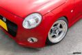 オーナーのカスタム意欲は、顔面スワップだけには留まらない。「現行コペンでシャコタンって珍しいんですよ!」との理由から、ギリギリのツライチセッティングを追求。フロントに7.5J、リヤに8.5JのワークCR01をセット。シュピーゲルの車高調に、J-LINEのリヤアクスルキット(ネガキャン8度)などを組み合わせてロースタイルを構築している。