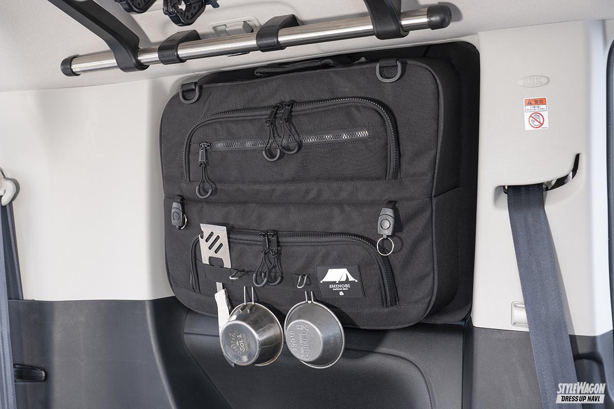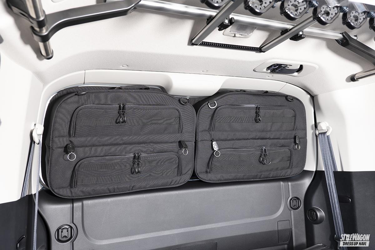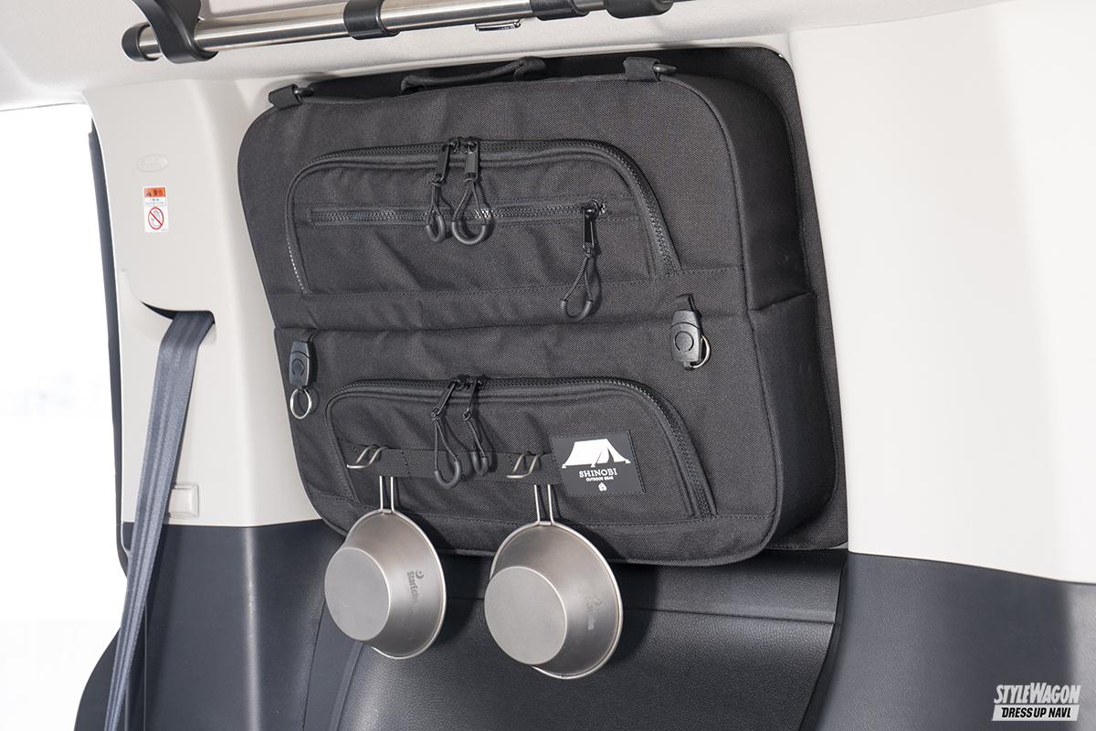 アウトドア系のアイテムを開発するシノビからデビューしたプラス空間・ブラインドラゲッジは、左右のクォーターガラスとリアウインドウの形状に合わせて専用設計された収納バッグ。汎用品ではないからフィッティングが高く、なおかつ吸盤とネジでガッチリ固定。キャンプ道具だけでなく子ども用のおむつやウェットティッシュなど生活に必要なアイテムも収納OK。ラゲッジスペースの空間を確保しながら、より多くの荷物を積むことができるのだ。ガラスのサイズに合わせて作られているため、外から車内が見えにくくプライバシーの保護にも効果的。サイドウインドウ用(2個)とリアウインドウ用を販売しており、セットで購入しても4万円でお釣りがくるからコスパも高い。クルマ旅のお供にぜひ!