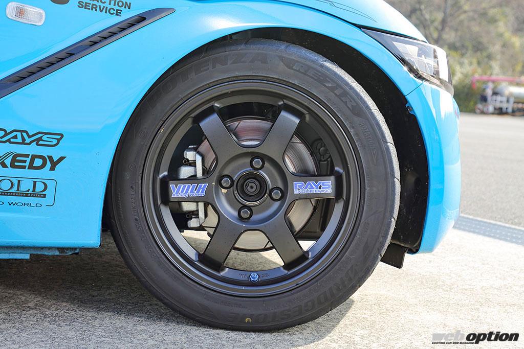 ナビックが最も拘ったという足回りは、ボルドワールドとのコラボで誕生したオリジナルのフルタップ車高調(F4kg/mm R5kg/mm)を軸にセットアップ。これは「軽快な回頭性」をテーマに、街乗りでの乗り心地とサーキットでの路面追従性を高次元で両立させた逸品だ。