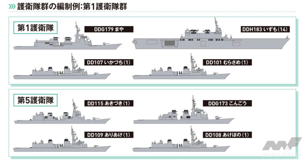 海上自衛隊では2025年度末に大きな組織改編が予定されている。既存の「護衛艦隊」を改め、「水上艦隊」が編成される。これまで護衛艦隊は以下の部隊で構成されていた。