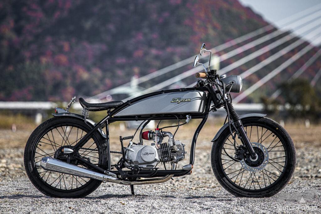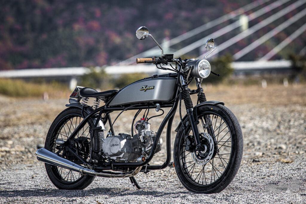 ヴィンテージなカフェレーサースタイルの「ACE125」でお馴染みのスカイチームから、新たに「ST-19」という125ccモデルが登場した。スタイルは往年のボードトラックレーサーをオマージュしたもので、約100年前のシンプルな雰囲気を再現。フレームから吊り下げられたタンクが特徴的なデザインとなっている。
