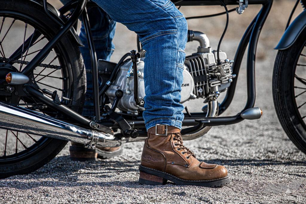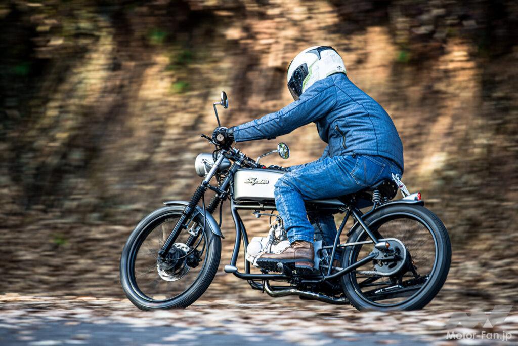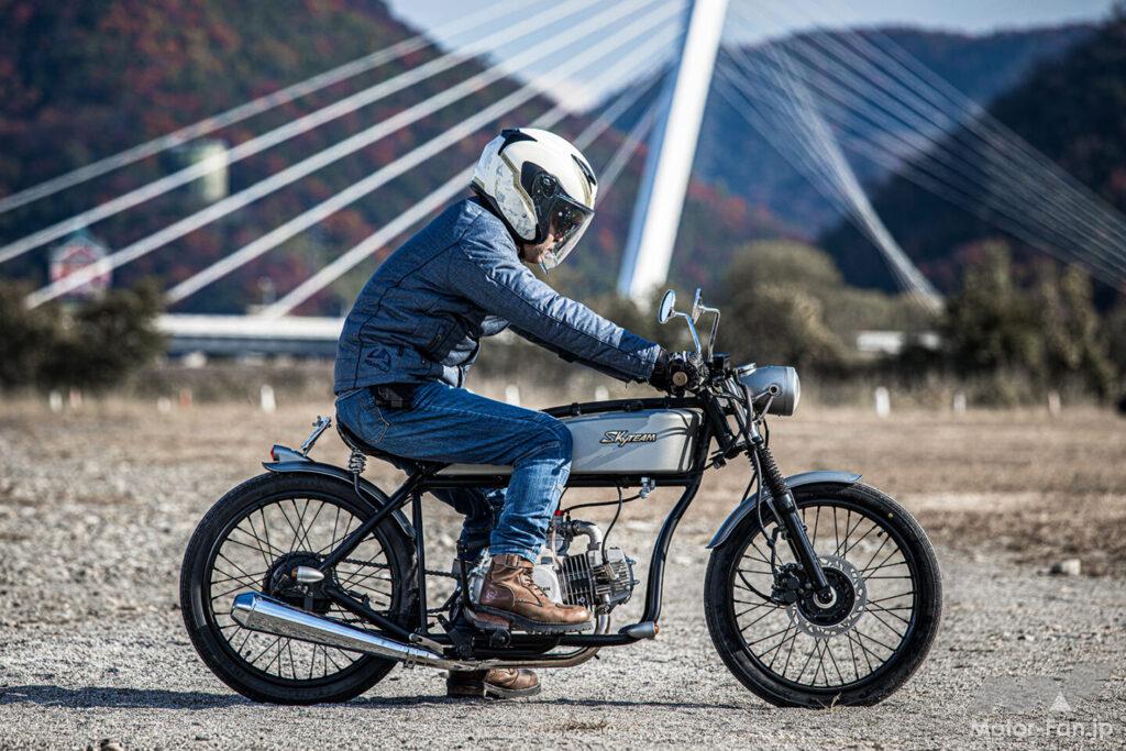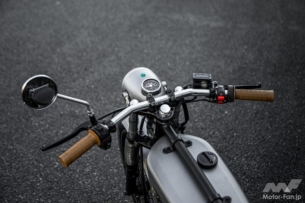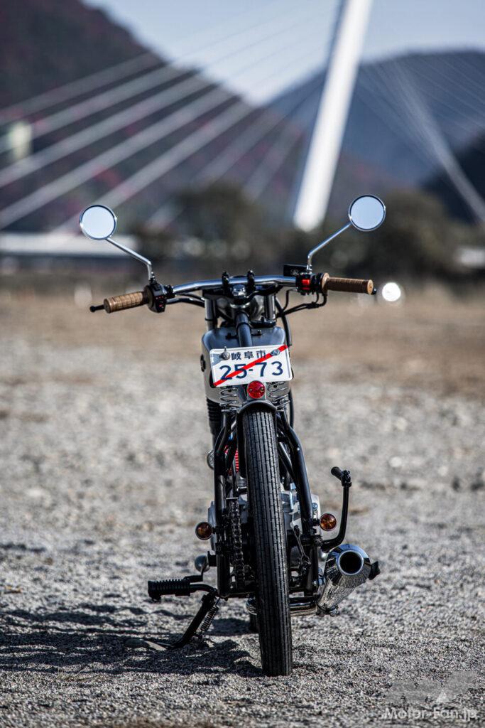 さて、気になるのは実際の乗り味だが、リジット仕様のリヤサスペンションということもあり、乗り心地には割り切りが必要。キック始動はスムーズだったが、純正のφ19キャブレターは純正仕様では燃調がやや薄めとされ、始動に手こずるケースもあるという。車体は驚くほど軽く、抜群の足つきで不安要素は皆無! ただ、ポジションが独特で、上半身が前傾なのにステップが前方にあり、カフェレーサーとクルーザーが合体したような雰囲気になる。慣れればいいのだろうが、気になる方はアップハンドル仕様を計画中というので続報に期待しよう。