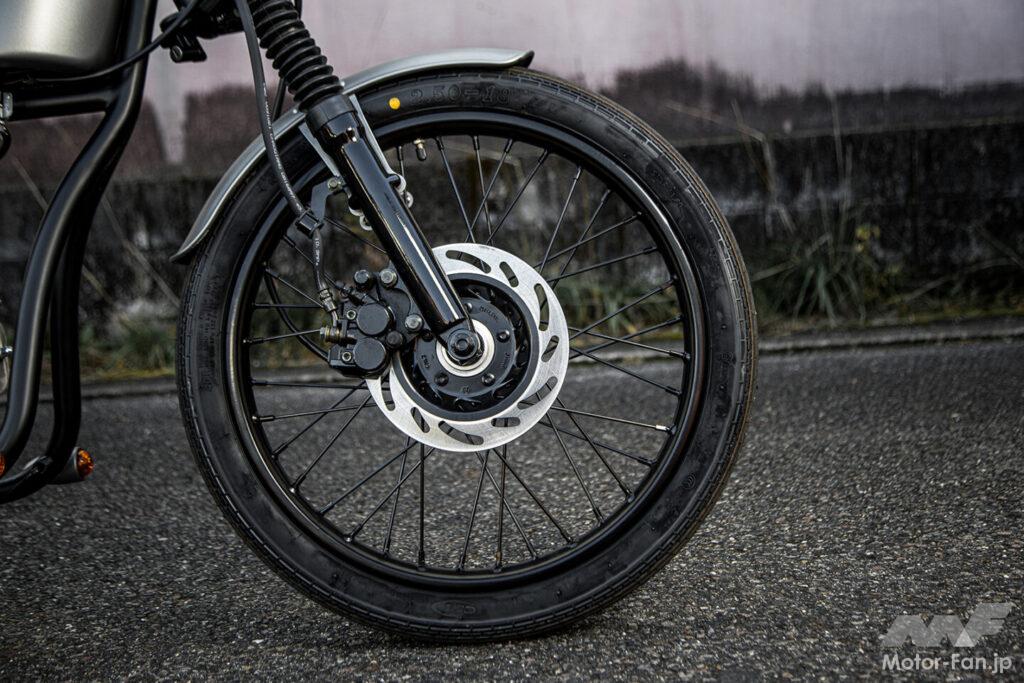 シート高は未公表ながら、ローポジションな車体構成により足つき性は非常に良好。 車両重量68kgと軽く、取り回しも楽に行える。