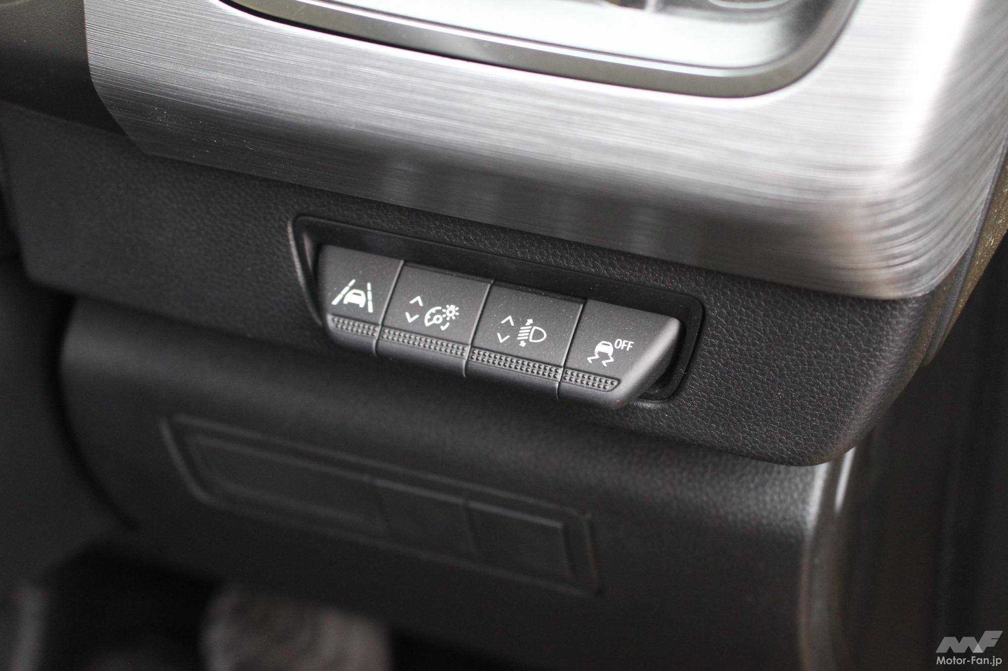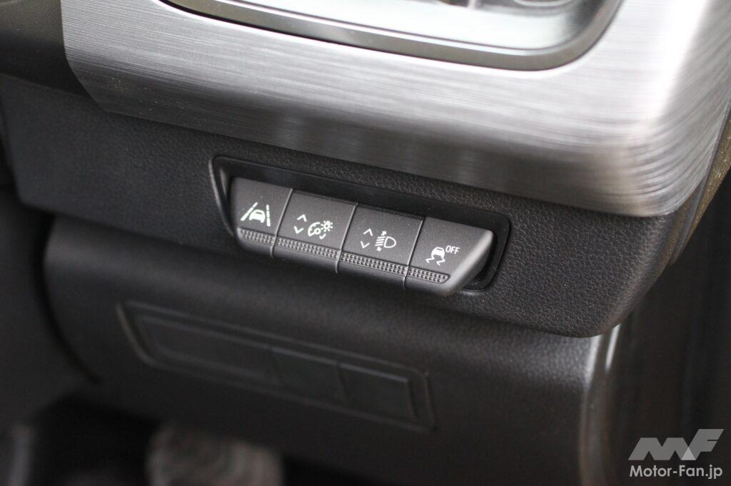 最大の魅力は、先述したADASの全車標準化で、ストップ&ゴー付アダプティブクルーズコントロール(再発進が3秒以内なら自動発進する)をはじめ、操舵を支援する車線中央維持機能と車線逸脱機能、衝突被害軽減ブレーキなどを搭載。キャンプやウインタースポーツ、マリンスポーツ、あるいは帰省などのロングドライブでの疲労度軽減に大きく寄与してくれるはずだ。先進安全装備の標準化だけでも先代からの乗り換えなど、購入動機になるケースも出てくるだろう。