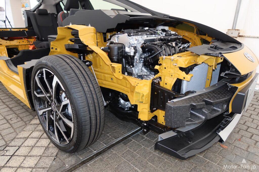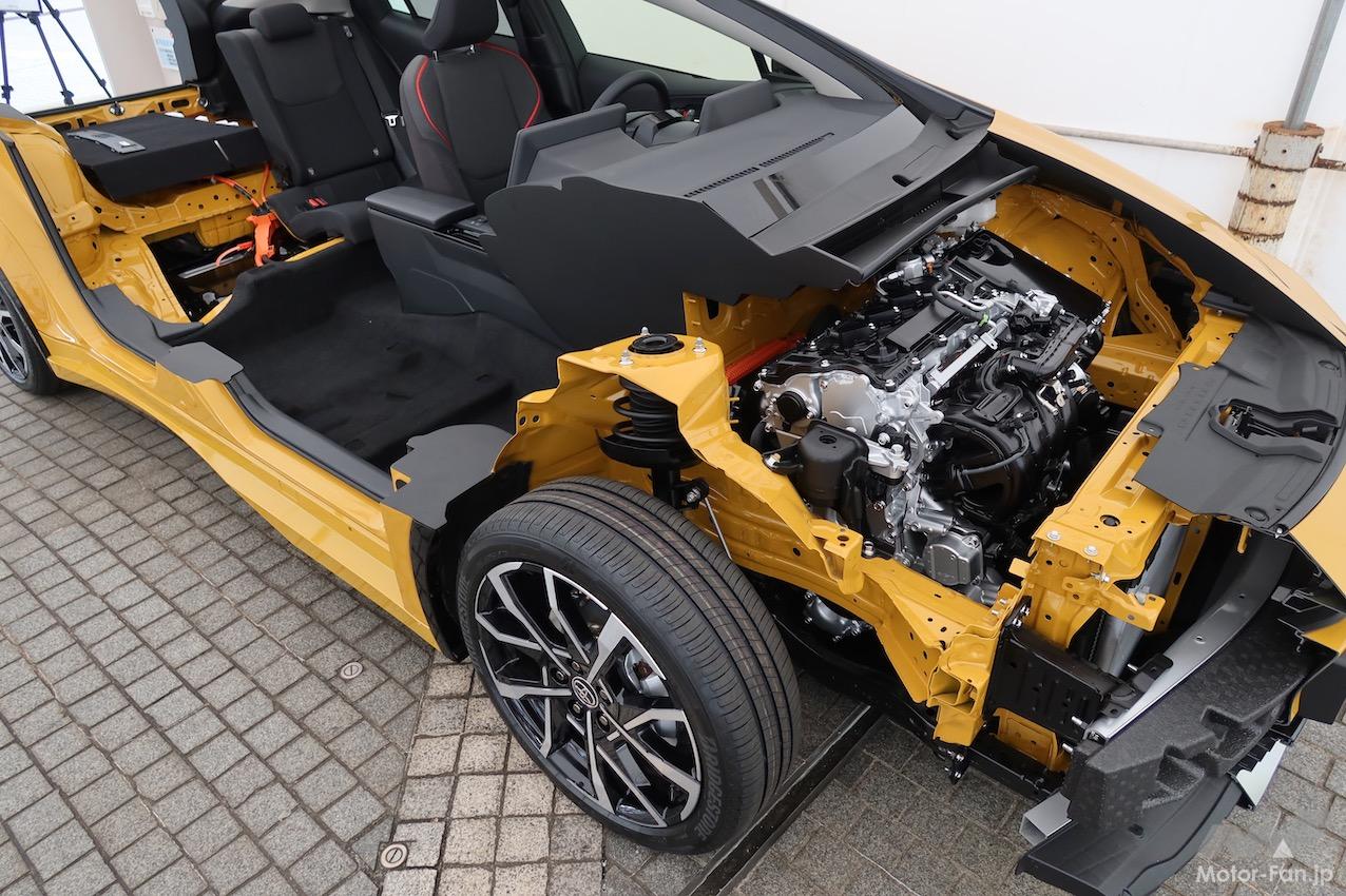 プリウスPHEVからはひとつ車格が上がった印象を受けるが、これを実現した理由のひとつはダンパー(ショックアブソーバー)にありそうだ。2018年に発売されたカローラスポーツで初適用し、以後、ヤリスなど、トヨタのBセグメント/Cセグメントに展開を拡げているプロスムース(Prosmooth)の製品名を持つKYB製のダンパーを適用している。