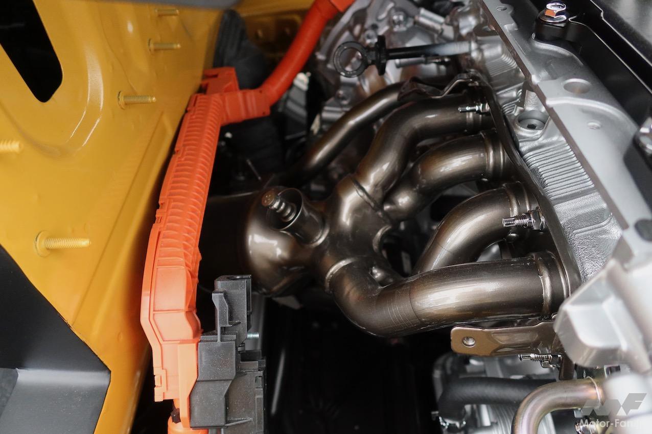 プリウスは高いモーター出力を高い効率で運用するためにバッテリー電圧を昇圧しているが、PHEVは高出力を得るために二段昇圧し、HEVの600Vに対して650Vに高電圧化しているという。大容量のバッテリーを積んでいることもあって出力には余裕があり、余力が残っているという。「4WDにするともっと速く走れるんですけどねぇ。そういう話もあったのですが」と技術者は言うが、カットモデルを見れば一目瞭然で、リヤにモーターを搭載するスペースは残っていない。インホイールモーターを適用するくらいしか手はないだろう。