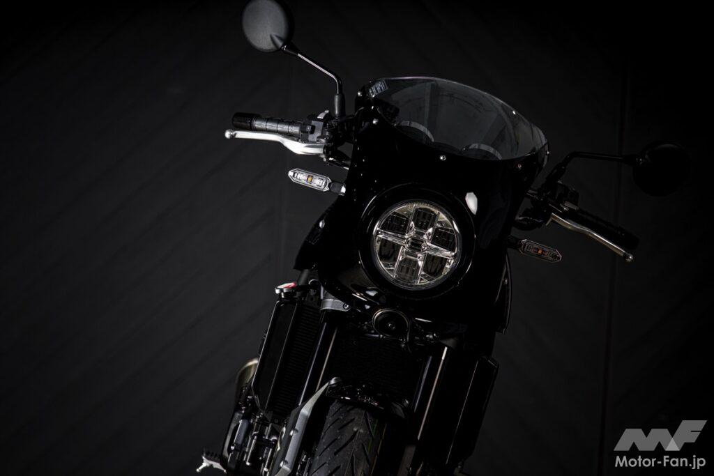 スタイリング面では、Z900RSの基本造形をベースに、カフェレーサーらしい専用装備が与えられている。特徴的なのは、スポーティな印象を演出するとともにウインドプロテクション効果も発揮するフロントカウルである。これは単なるデザインアクセントにとどまらず、走行中の風の流れを整える役割も持ち、実用性と存在感を両立している。さらに、ブラック塗装のローポジションハンドルや、専用設計のカフェレーサーシートが装備され、Z900RSとは一線を画すライディングポジションを実現。視覚的な印象だけでなく、乗り手が体感する走りの印象にも大きく寄与している。