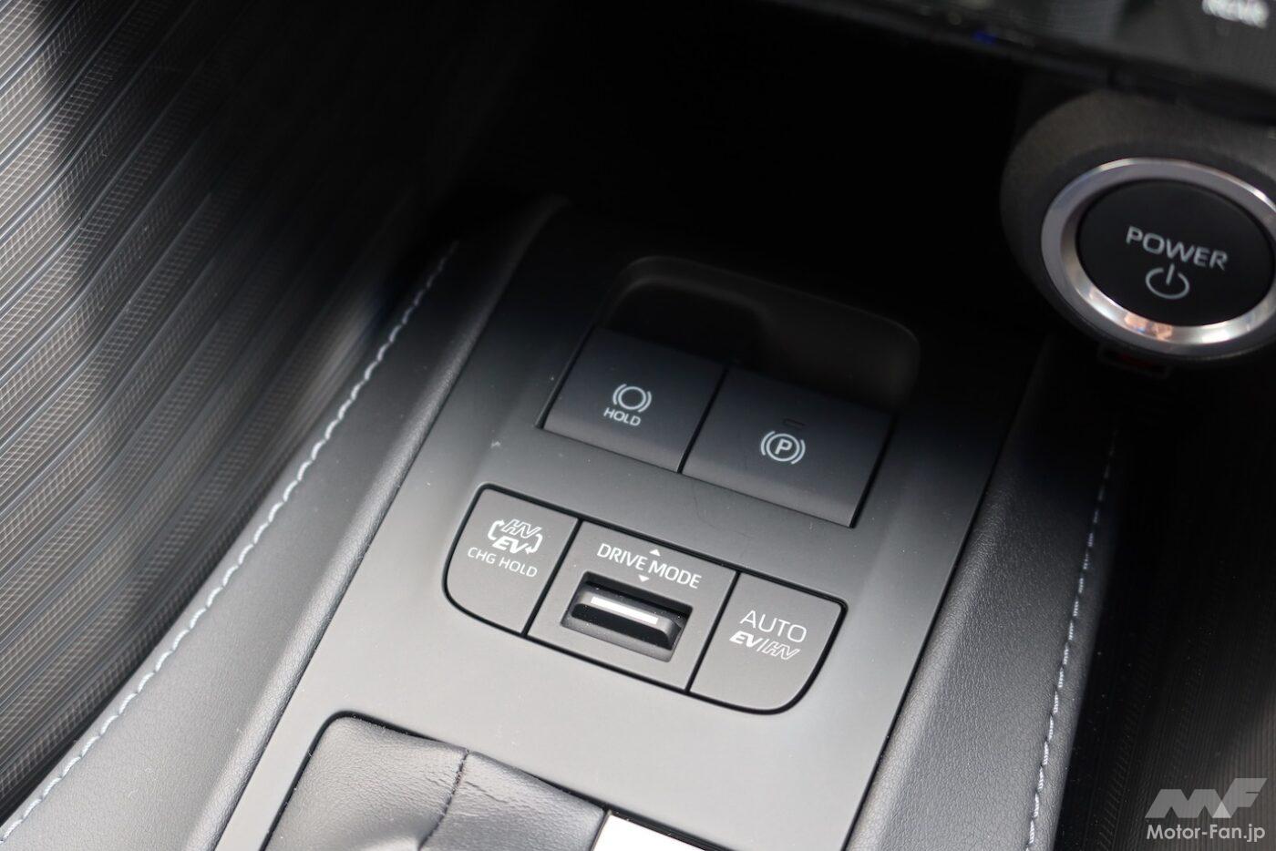 リヤにはHEVと同様、4NM型のモーターを搭載する。最高出力/最大トルクは40kW(54ps)/121Nmだ。トヨタお得意のリヤにモーターを搭載する全輪駆動(E-Four)である。システム最高出力はHEV E-Fourの163kW(222ps)に対し、PHEVは225kW(306ps)。床下に搭載するリチウムイオンバッテリーの総電力量は18.1kWhで、国土交通省審査値のEV走行換算距離は93kmだ。
