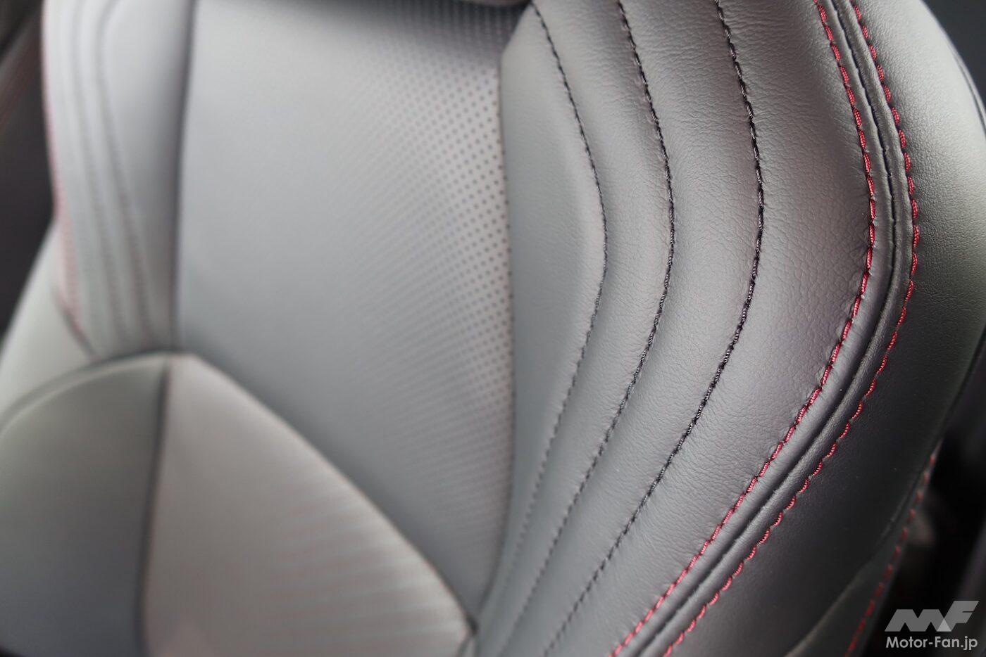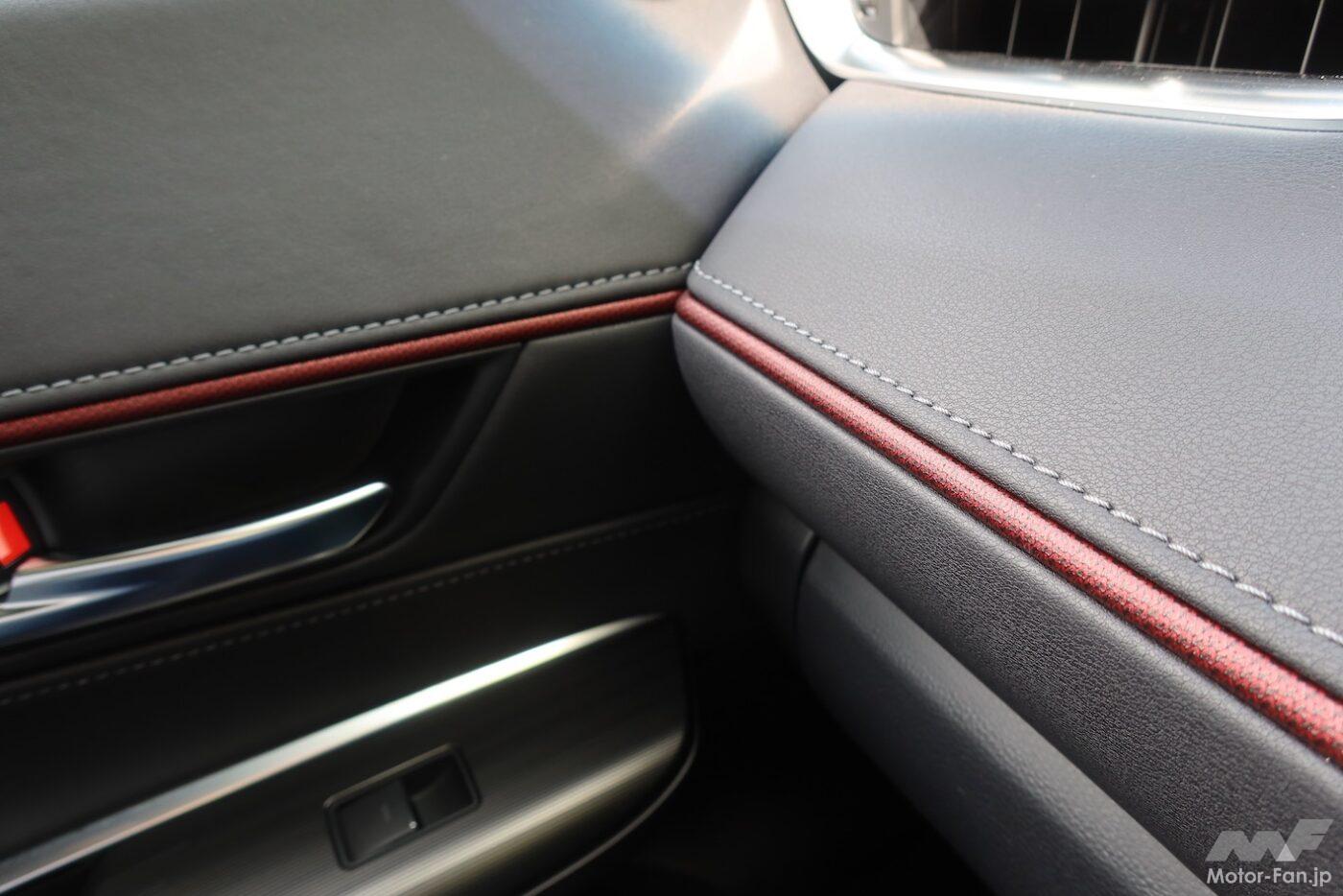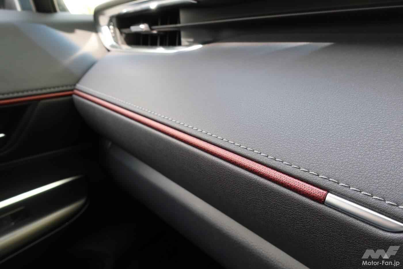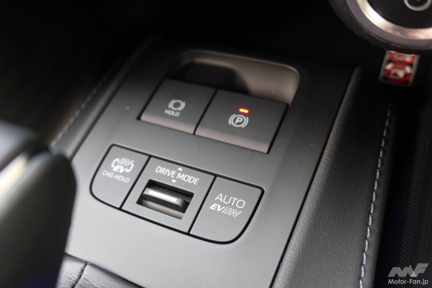 インテリアはHEV Z Leather Packageのシートステッチがダークグレーまたはブラウンなのに対し、PHEVはダークレッド。ダッシュボードやドアトリムに入る金属メッシュ質感のパイピングオーナメントは、HEV Z Leather Packageがサテンブラックまたはサテンブラウンなのに対し、PHEVはこれまたダークレッドとなる。華やかさと落ち着きが同居したようなムードだ。