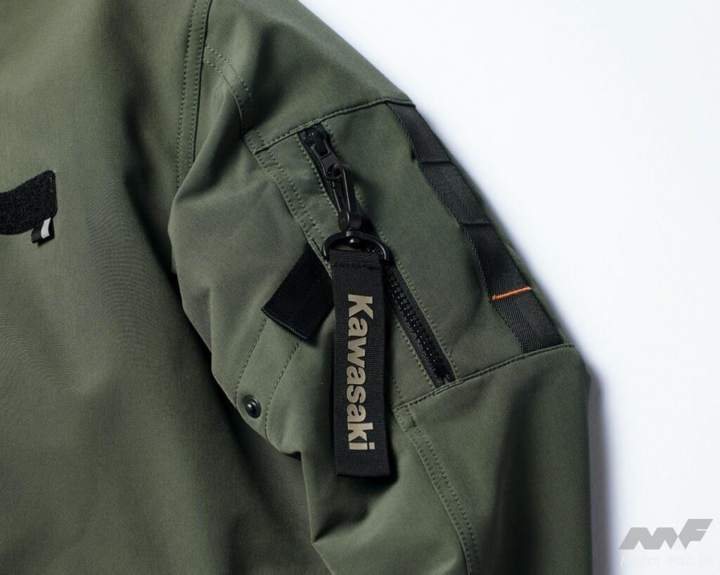 「カワサキ クイックドライフライトジャケット」は、アールエスタイチとコラボレーションした機能的なジャケットである。ストレッチ性、通気性、速乾性に優れたクイックドライ素材を使用し、超撥水加工により水滴や汚れが付きにくい設計となっている。