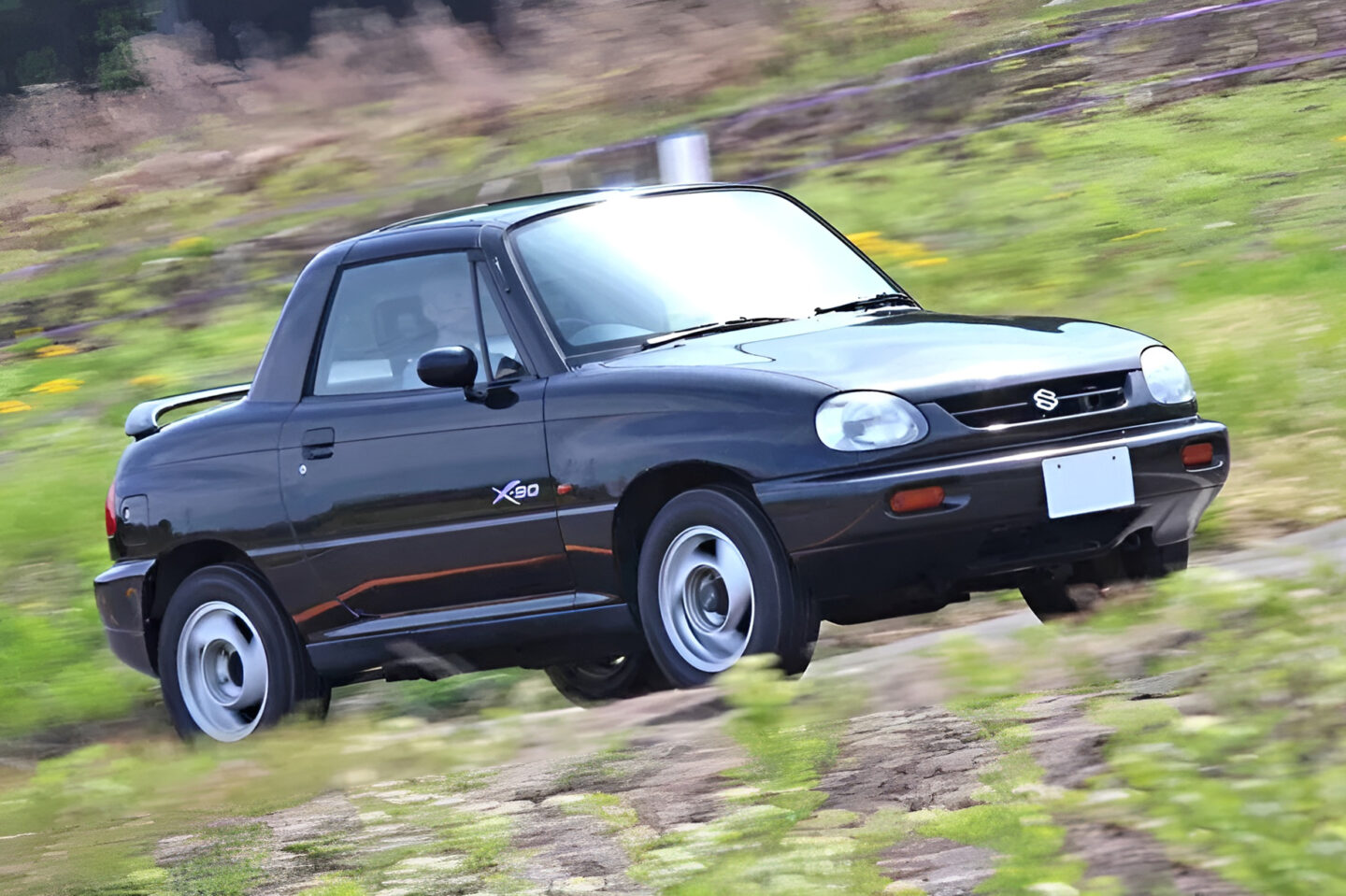 初代エスクードの3ドアモデルをベースに設計され、1995年10月に登場したX-90。モノコックボディではなく、強固なラダーフレームにボディを載せ、駆動方式もエンジン縦置きのFRを基本にトランスファーを備えたパートタイム式4WDが採用されたことで、コミカルな見た目とは裏腹に、本格的なクロカン4WDとして高い悪路走破性を兼ね備えていた。