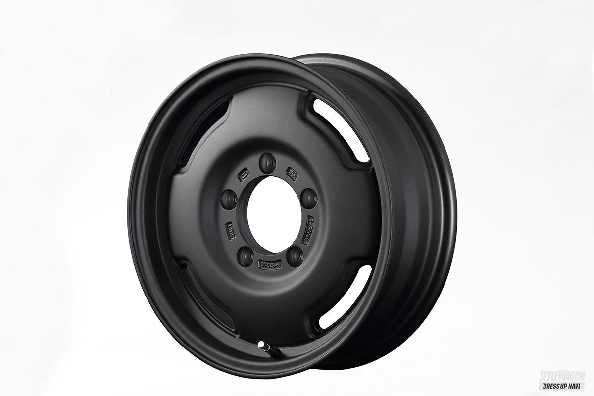 LJジムニー やSJジムニーなどが装着していた往年のスチールホイールの雰囲気を、アルミホイールで再現したレトロテイストが人気なワイルドボアSR。80年代のリングホイールをイメージしたアイアングレー、無骨なアイアンブラック、レトロなコットンホワイトの3色。