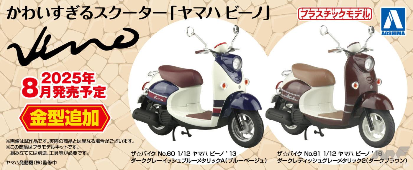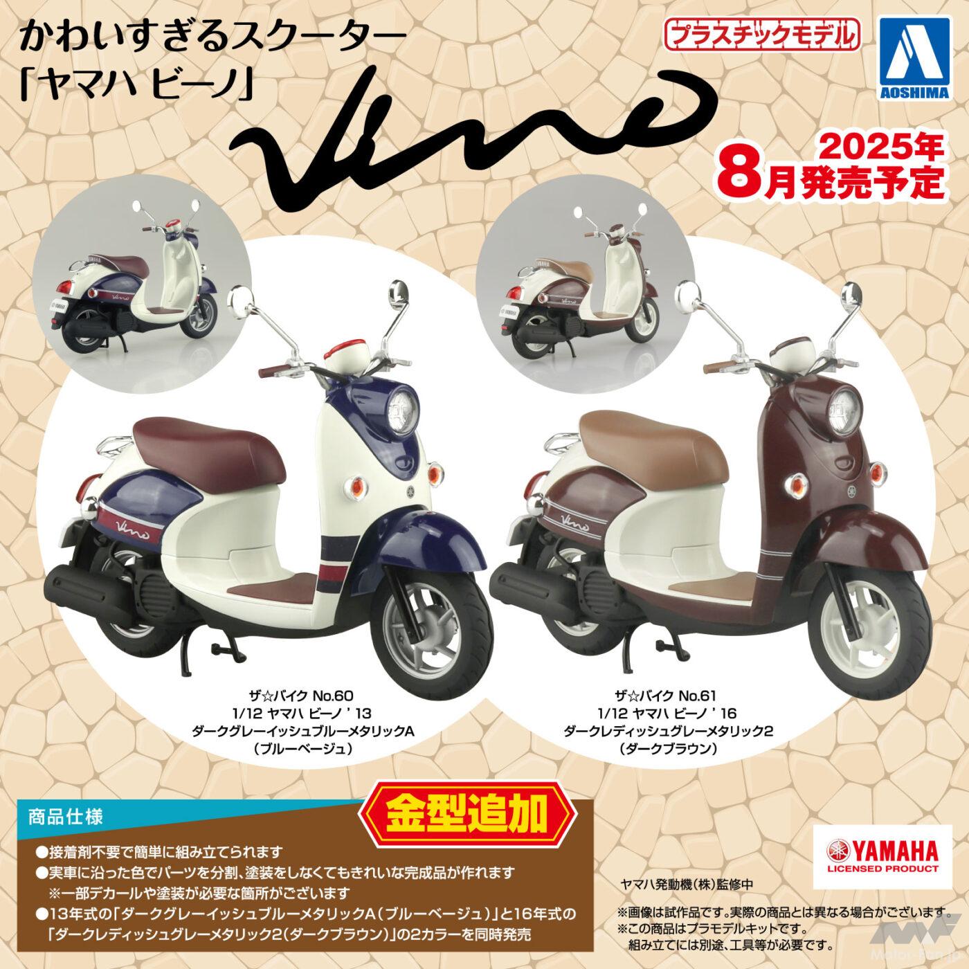 AOSHIMA ザ☆バイク No.60 1/12 ヤマハ ビーノ ’16 ダークレディッシュグレーメタリック2(ダークブラウン)……3190円(税込)/2025年8月発売予定